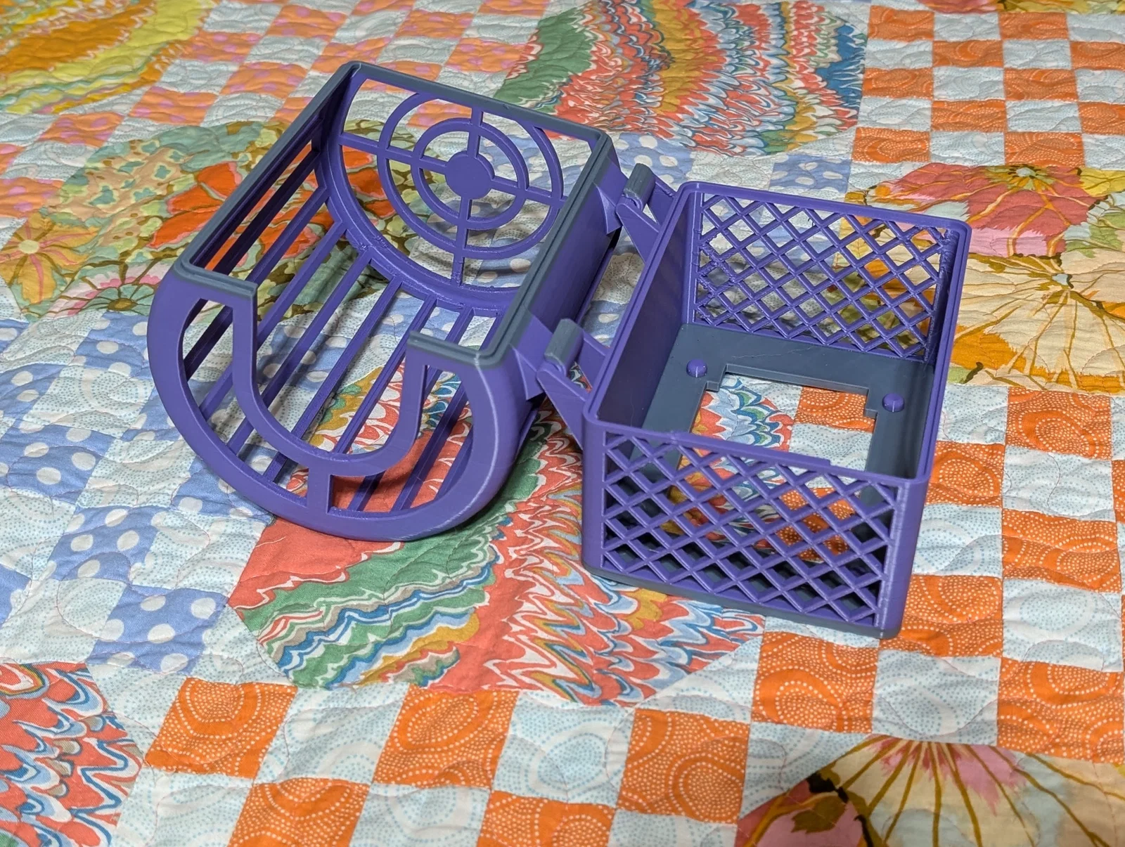 EEW Nano Purr Protector là case chụp quanh EEW Nano/eSpinner, giúp bạn quay sợi (yarn) yên tâm hơn khi mèo tò mò muốn lại gần. Khuyến nghị in kèm supports, ưu tiên loại organic.