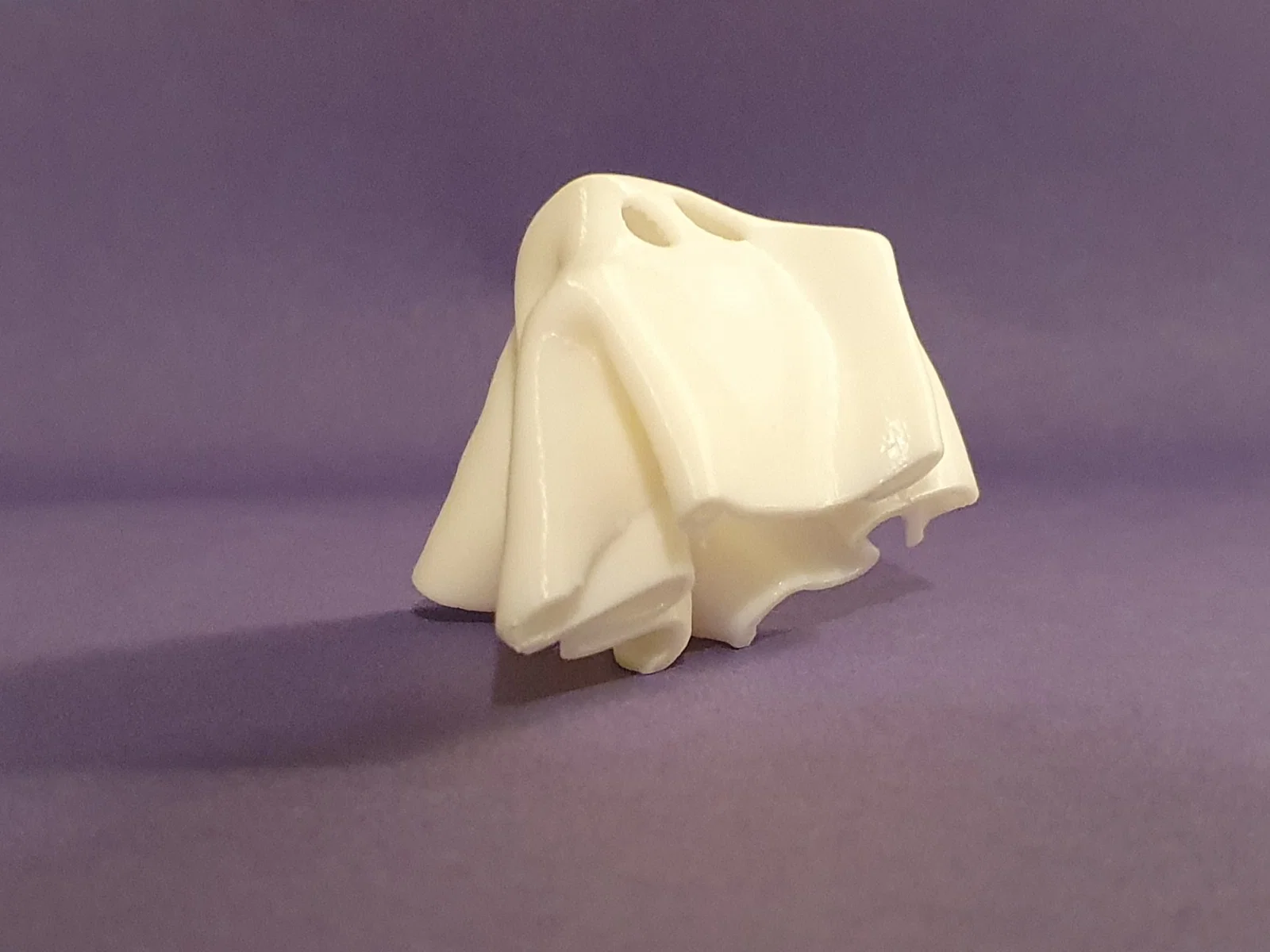 Mẫu Floating Ghost nhỏ xinh, kiểu ma bay lơ lửng. Có 2 file STL giống nhau, bản xoay giúp in dễ và không cần supports. Gợi ý in infill cao (khoảng 70%), 4 walls, initial layer 0.28 và thêm brim để bám bàn tốt.