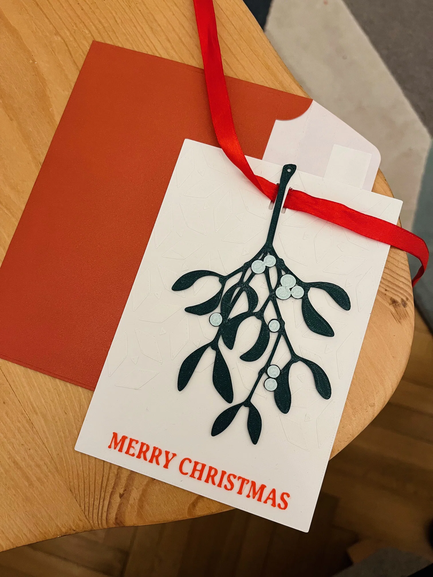 Mùa lễ hội cuối năm đang đến gần và đây là thời điểm tuyệt vời để tự tay tạo ra những món quà độc đáo dành tặng người thân. Mẫu thiệp Giáng sinh in 3D này không chỉ là một tấm thiệp thông thường mà còn tích hợp một món quà nhỏ đầy tinh tế: cành cây tầm gửi (mistletoe) xinh xắn. Với thiết kế trang nhã, tấm thiệp mang lại không khí ấm áp và truyền thống của mùa đông, khiến người nhận cảm thấy vô cùng đặc biệt khi cầm trên tay.
