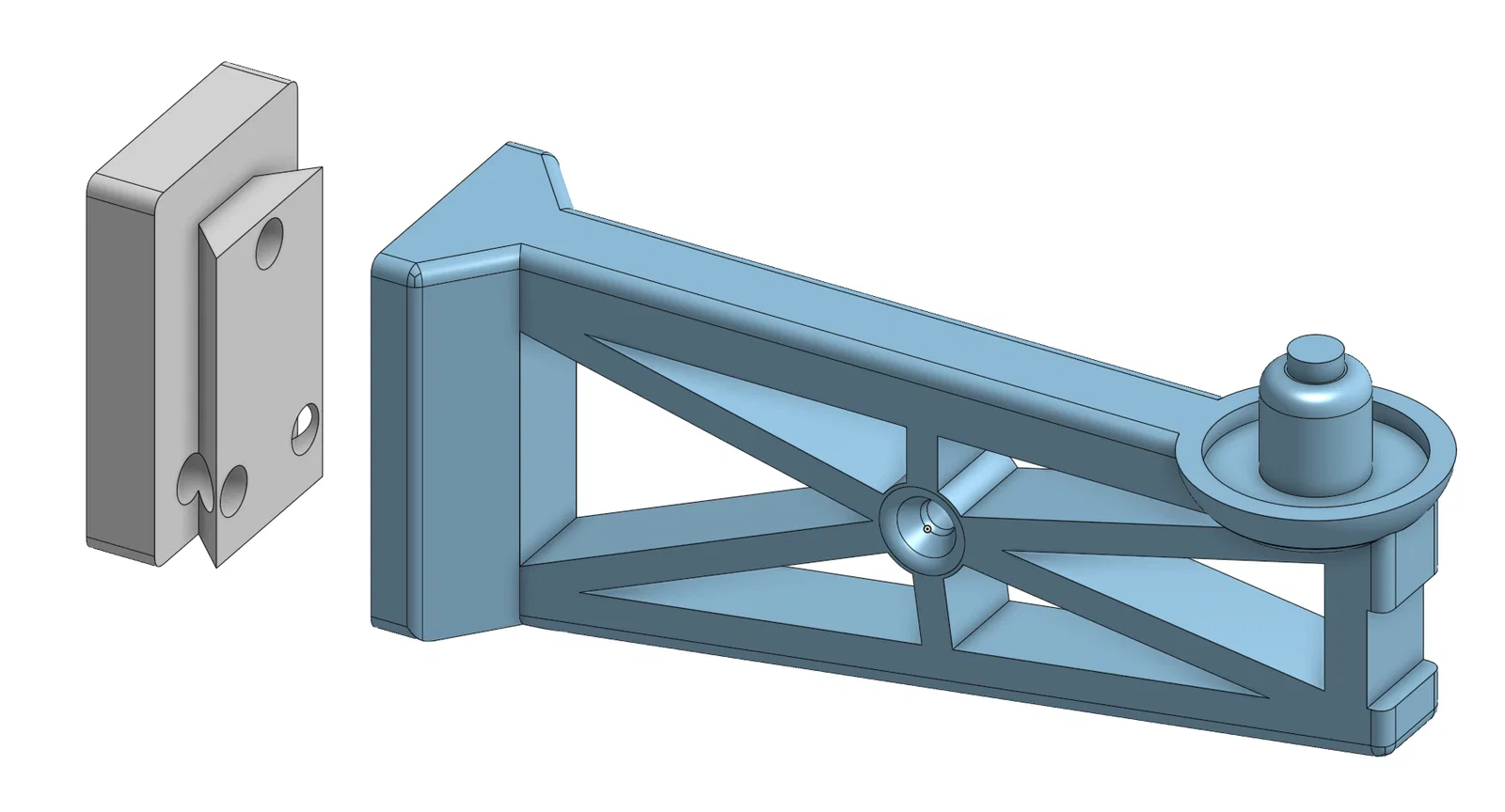 Ngàm treo tường làm trên Onshape, giúp bạn trưng bày Lego Tie Fighter UCS 75095 theo đúng cách mà chân đế trưng bày đang dùng. Dạng nêm (wedge) cho phép che các lỗ bắt vít để nhìn gọn gàng, sạch sẽ. Mình cũng chừa một phần khoét (recess) ở mặt trước của ngàm để bạn nêm một viên gạch 2x2 vào, dùng để trưng bày plaque.