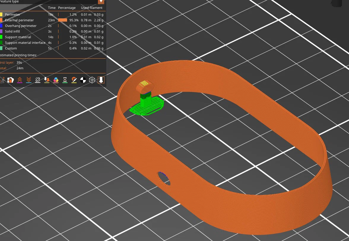 Bạn sẽ cần một ít Paint on Support cho phần “nub” của công tắc (xem hình trong slicer). Khi in xong có thể lộn nó từ trong ra ngoài để gỡ support dễ hơn.