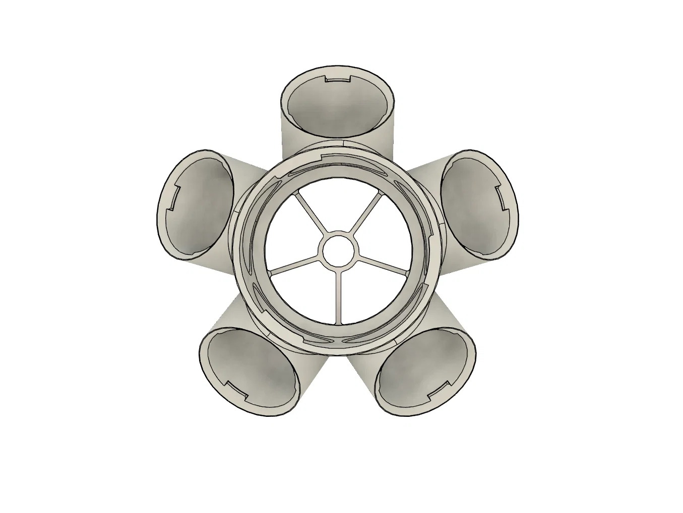 Mình cũng đổi thiết kế spoke sang dạng 5 hướng, vì các spoke nằm ngay giữa các chậu và làm lệch dòng nước một chút, nên rễ được làm ướt đều hơn.