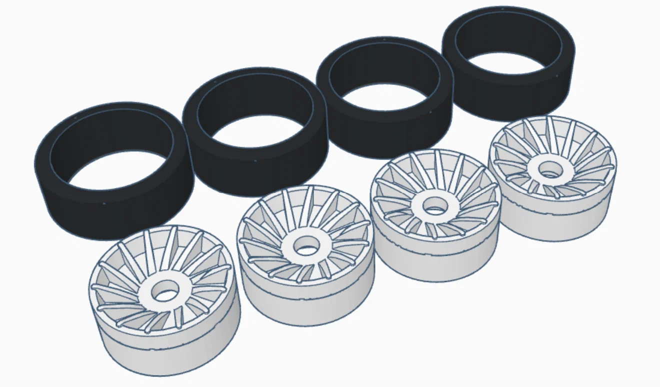 - Tách rời linh kiện: Bộ phận mâm xe và lốp xe được thiết kế riêng biệt, giúp bạn dễ dàng in bằng các loại nhựa khác màu hoặc chất liệu khác nhau.