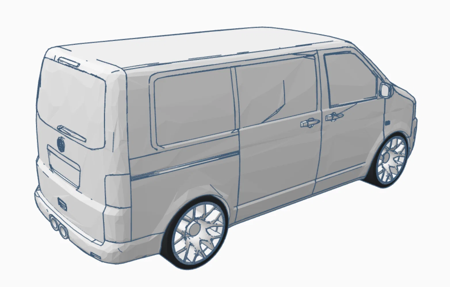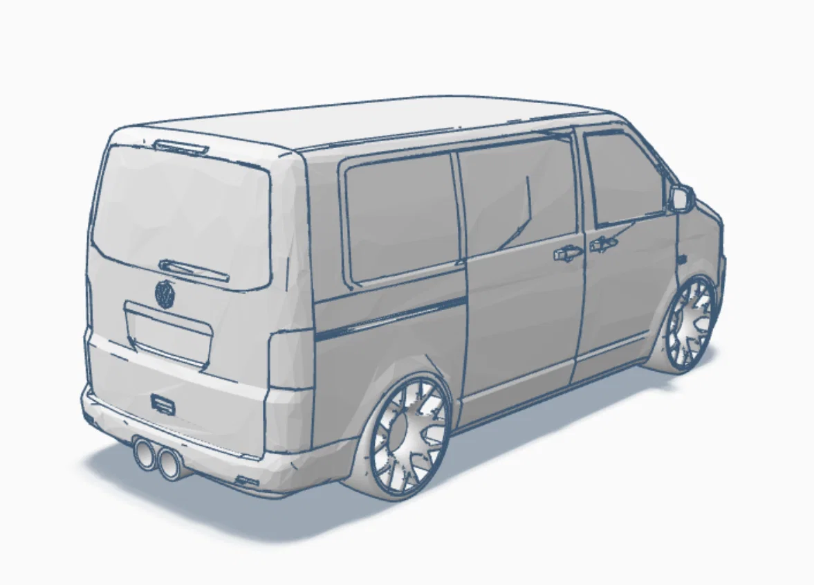 Mẫu VW Bully T5/T6 bản cập nhật mới, tỷ lệ 1/43. Đã tách mâm và lốp để in dễ hơn. Lốp in bằng TPU giúp luồn qua mâm dễ và bám chắc hơn, sẵn sàng “Ready to Race”.