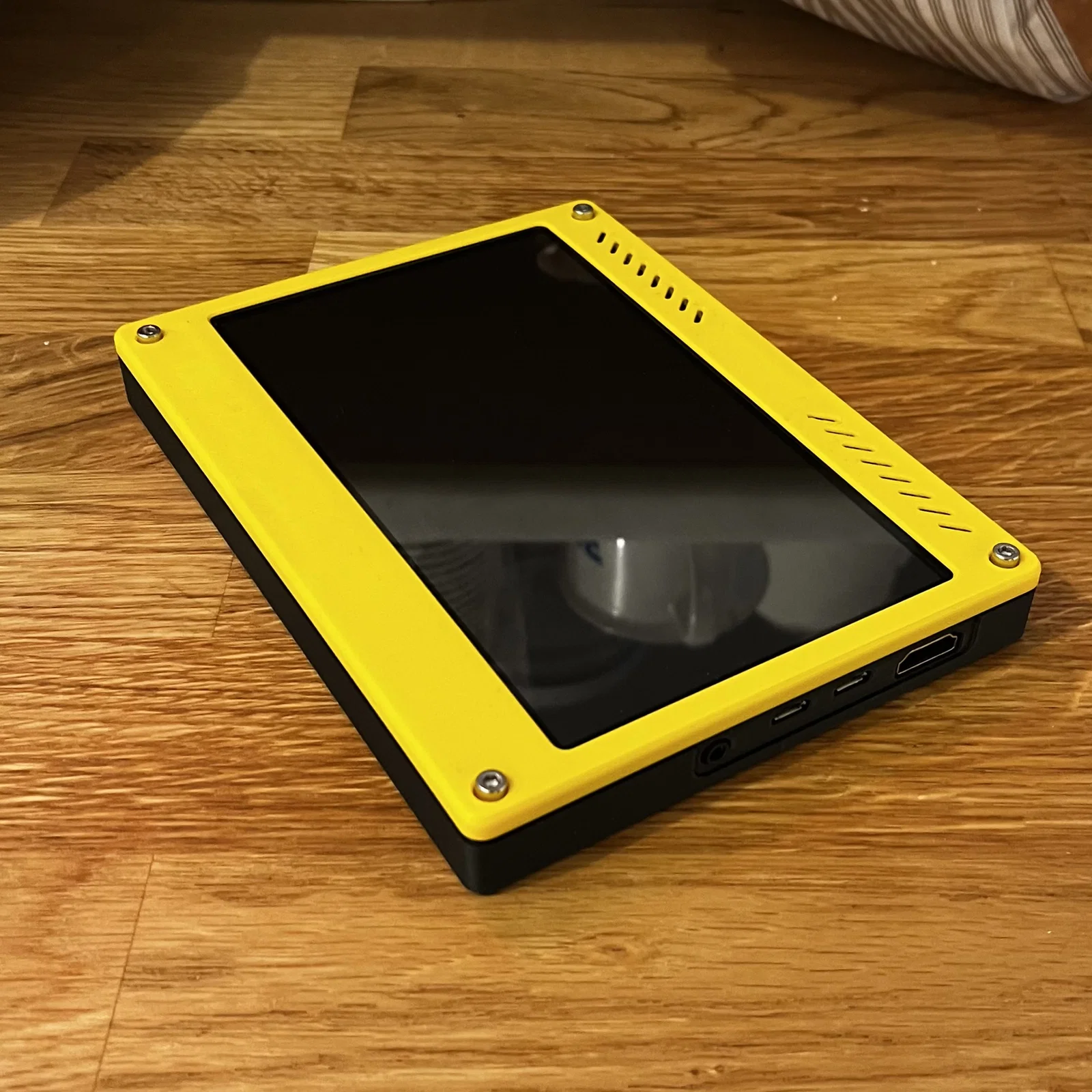 Dùng 4 con vít M3x18-20 để kẹp (sandwich) chung mặt trước, màn hình và vỏ sau lại với nhau. Nếu dùng màu sáng cho face plate và màu tối cho phần lưng, bạn có thể tạo cảm giác vỏ mỏng hơn so với thực tế. Mình đã cố gắng canh bezel đúng giữa vùng hiển thị thật nhất có thể, nhưng sai số nhỏ có thể làm lệch một chút. Tuy nhiên các con vít thì không đối xứng.