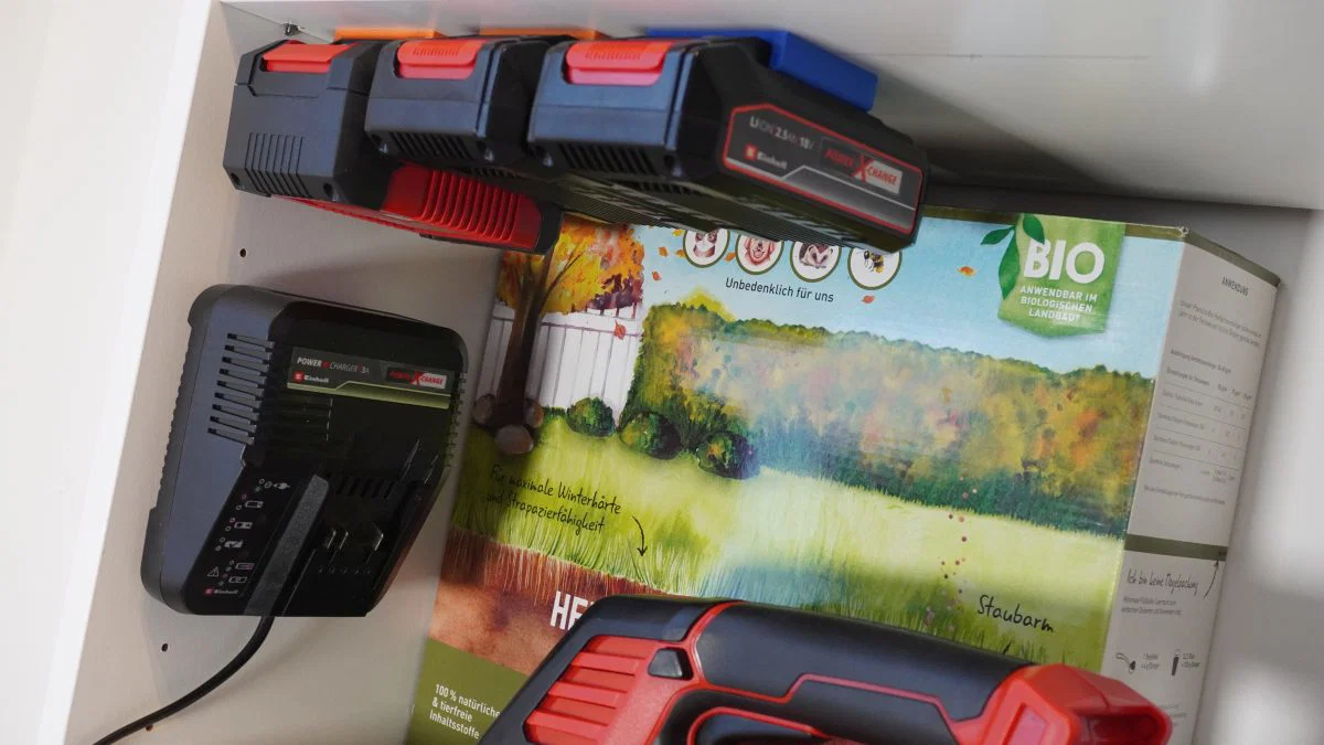 Giá đỡ cho pin Li Einhell Power X Change. Có thể dùng để gắn lên tường hoặc lắp treo ngược (overhead). Kèm theo đó là một giá đỡ dễ lắp cho trạm sạc 3A (Power X Charger 3A).