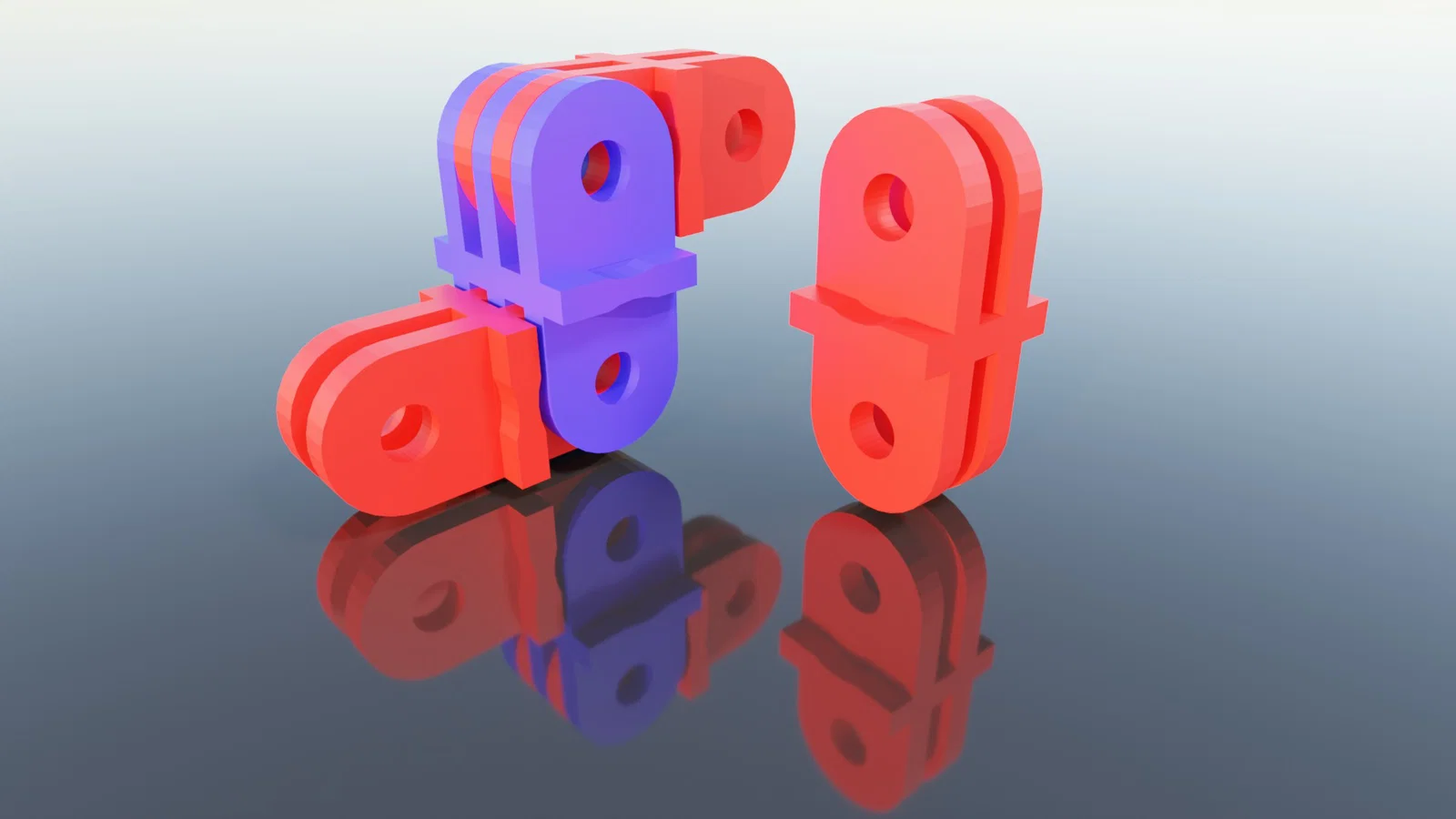 Adapter ngàm GoPro giúp đảo ngược thứ tự lắp (inverter), phù hợp khi cần đổi hướng/kiểu kẹp. Khuyến nghị in có Rafts và Supports, infill 15%, resolution 0.4x0.2. Mẫu còn WIP nên có thể kén slicer.