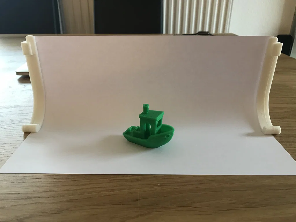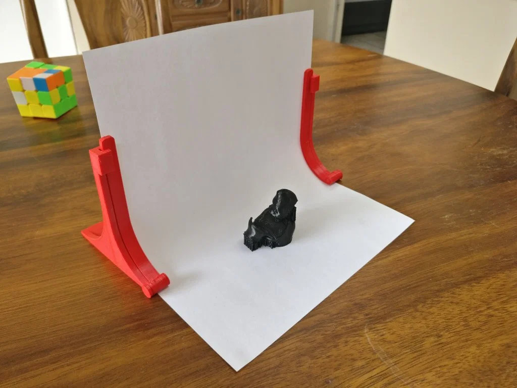 Cái giá đỡ này giúp tạo phông nền cong, không bị lộ vệt nối để chụp ảnh các món đồ từ nhỏ đến trung bình. Nó kẹp được các loại giấy từ giấy in văn phòng cho đến bìa cứng loại mỏng hoặc giấy thủ công. Bạn có thể dùng giấy màu hoặc giấy họa tiết để tạo điểm nhấn và độ tương phản. Khi gắn trên bìa cứng hoặc tấm lót chắc chắn, bạn có thể dễ dàng di chuyển để chỉnh góc sáng và góc chụp ảnh sao cho ưng ý nhất.