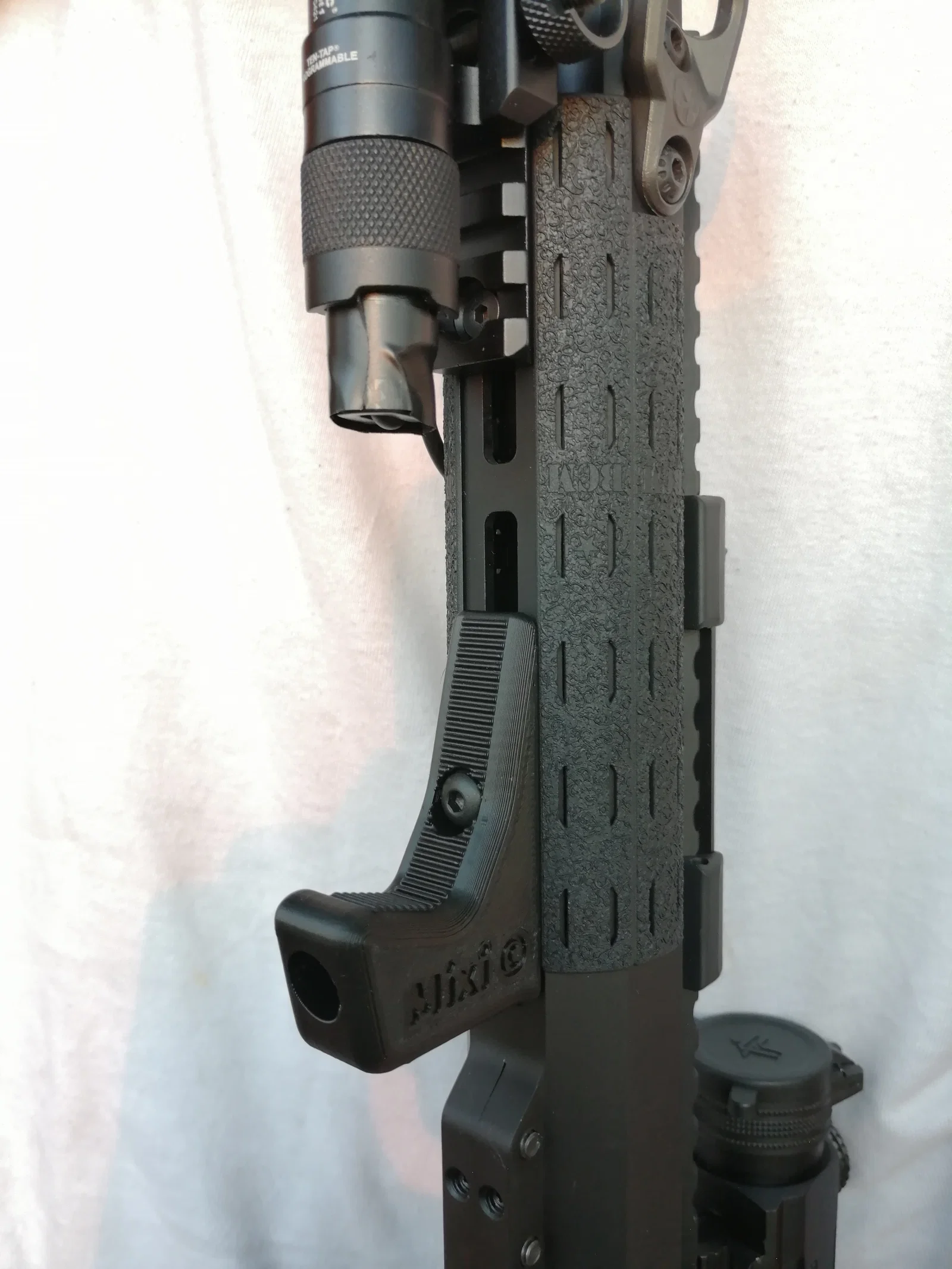 Bộ Foregrip M-LOK gồm 2 mẫu: một mẫu dành riêng cho AR-15 Anderson để chừa chỗ cho đèn pin, và một mẫu tương thích mọi bệ gắn M-LOK. Khuyến nghị in kèm supports, infill 95%.