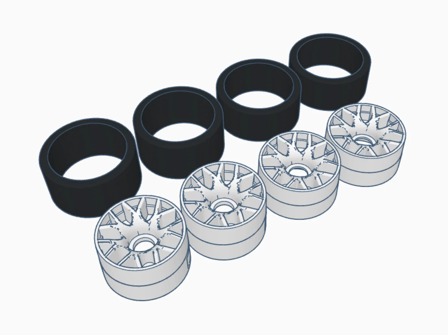 Lốp bắt buộc phải in bằng TPU. Nếu không thì lốp sẽ không vừa mâm, và khi dùng TPU thì lốp bám/giữ trên mâm tốt hơn.