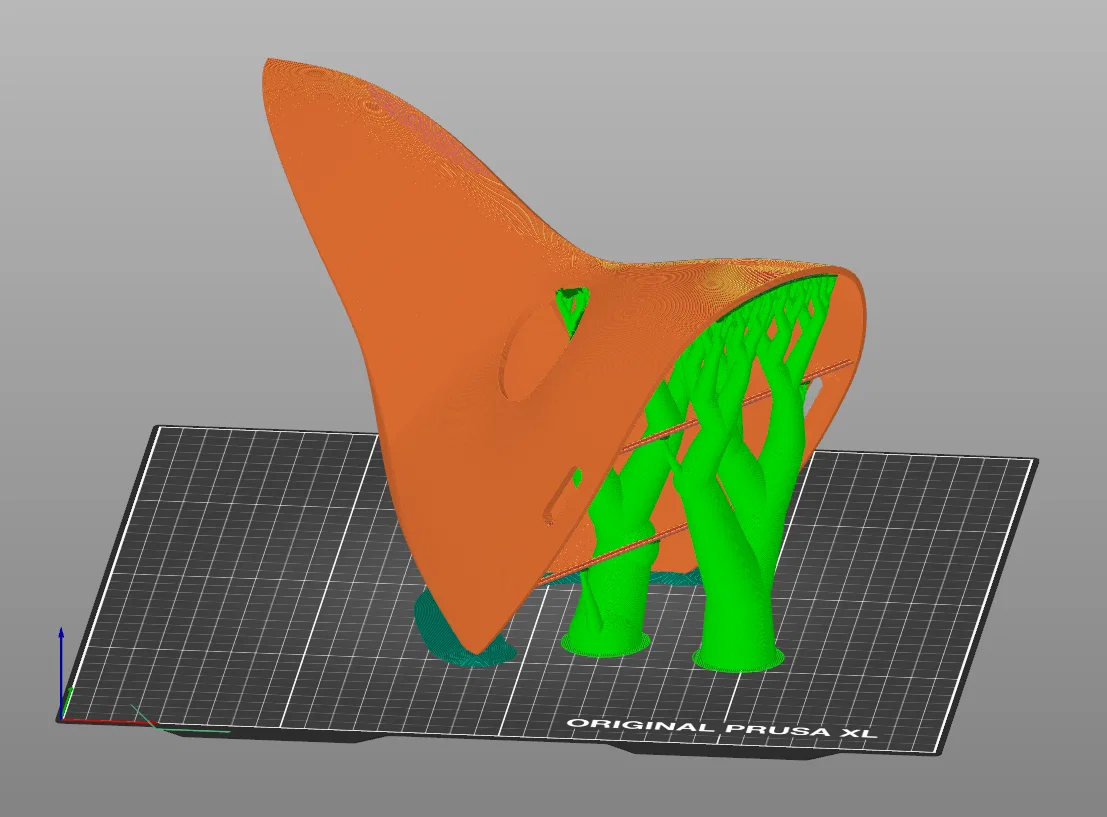 - Support: Sử dụng các dạng support dạng cây (tree support) như ảnh minh họa để tiết kiệm vật liệu và dễ dàng gỡ bỏ sau khi in mà không làm hỏng bề mặt mask.