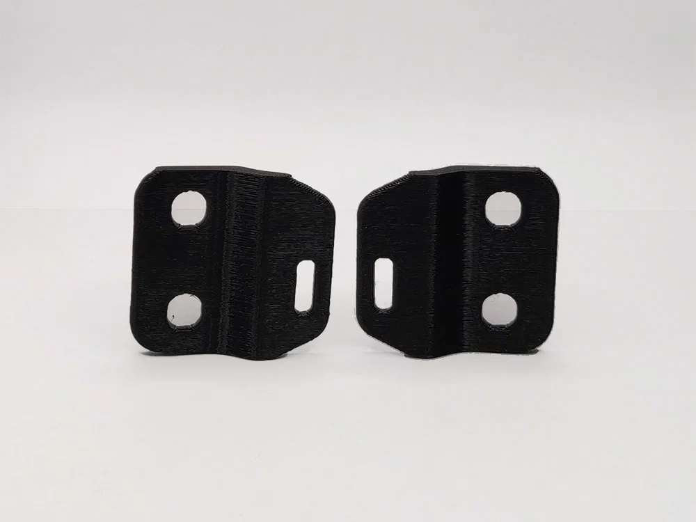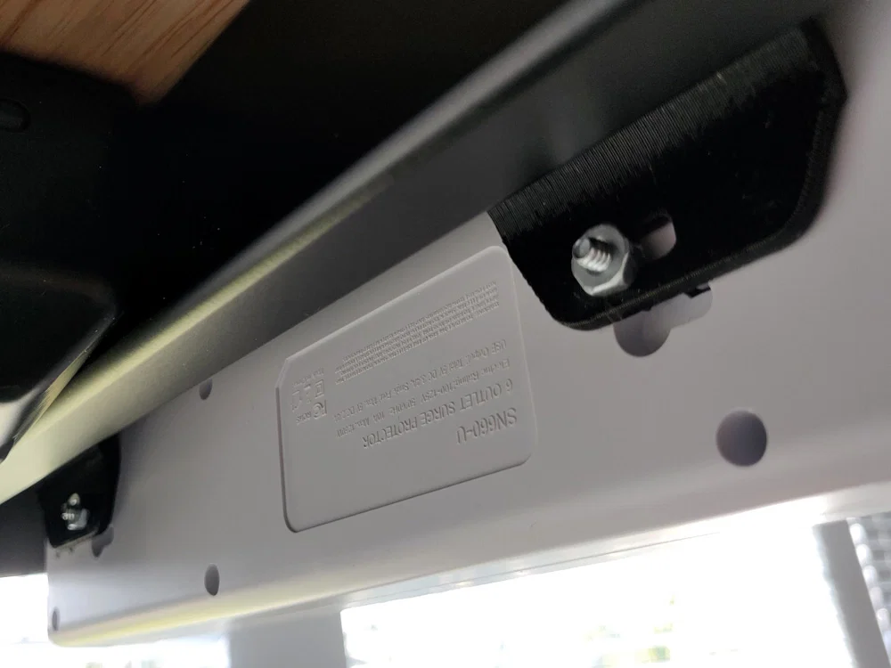 Cặp bracket/adapter giúp gắn power strip hoặc phụ kiện khác vào mặt dưới Uplift Desk, bắt vào lỗ ren crossbar bằng ốc M8 x 10mm. Có 2 bản -1/-2 khác hướng slot để dễ canh lỗ; khuyến nghị in dựng cạnh, PETG.