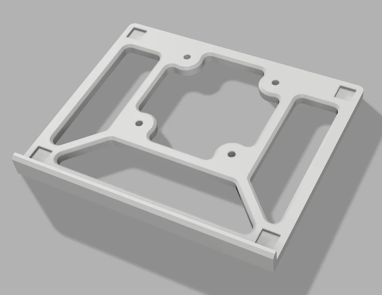 Gắn được vào plate VESA 75x75mm, loại hay có trên đa số monitor arm. Có chỗ khoét cho heat-set insert ren M4 dài 6mm và chân cao su vuông 12x12mm. Có 3 mẫu với phần gờ chặn phía trước (front lip) khác nhau: