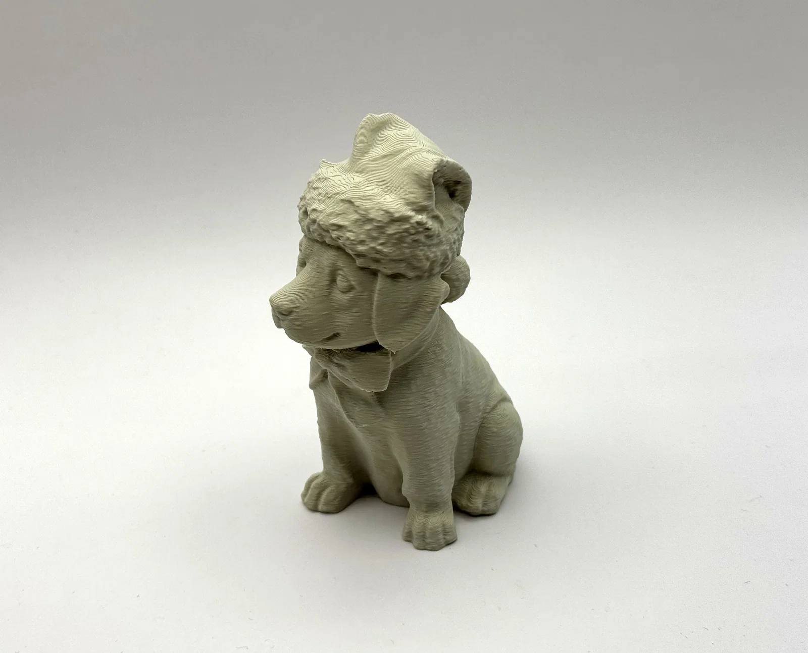 - Hoàn thiện: Sau khi in xong, bạn có thể đánh nhám nhẹ và sơn màu thủ công để chú cún trông sinh động và có hồn hơn, đặc biệt là các chi tiết như đôi mắt hay chiếc nơ.