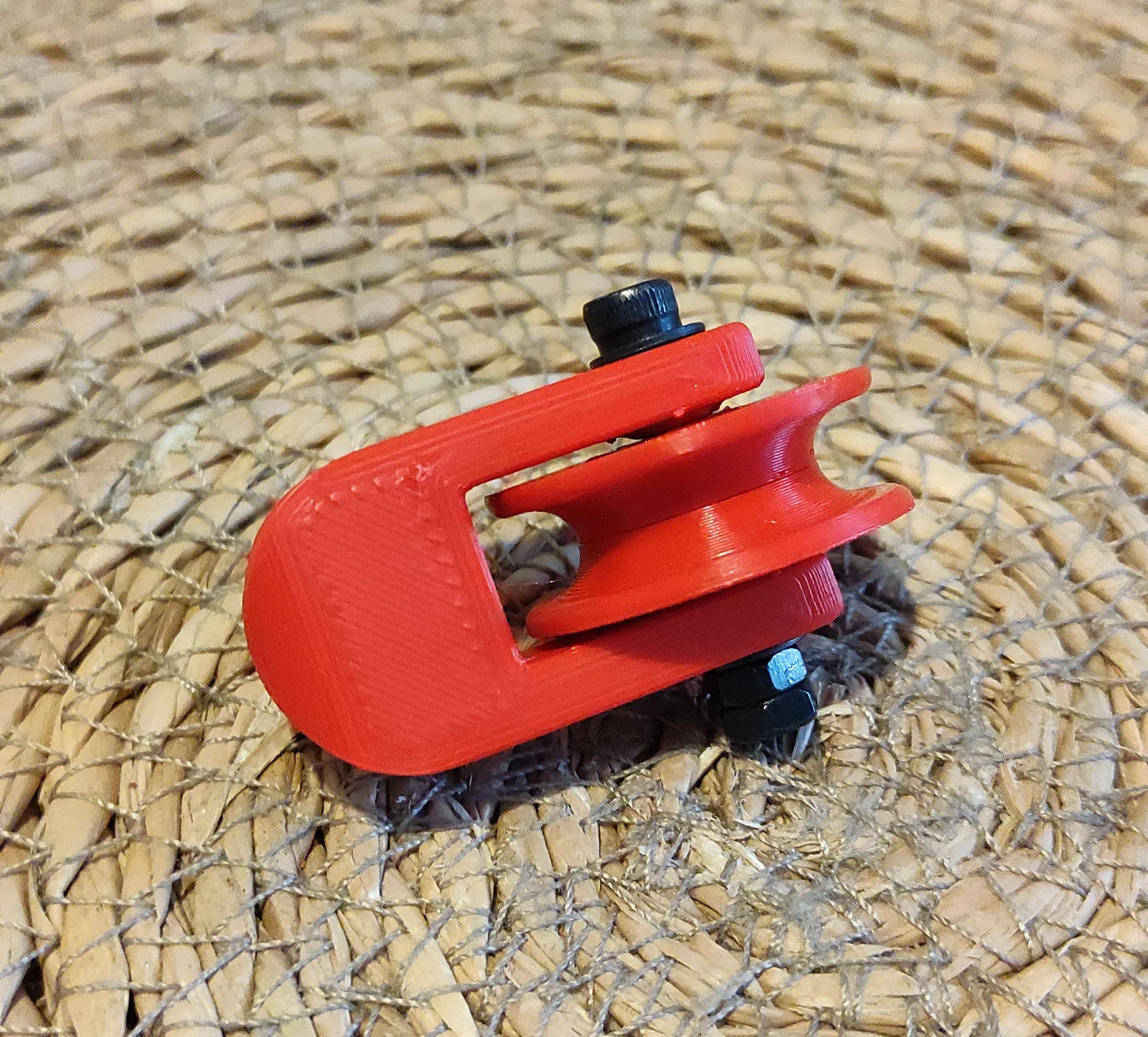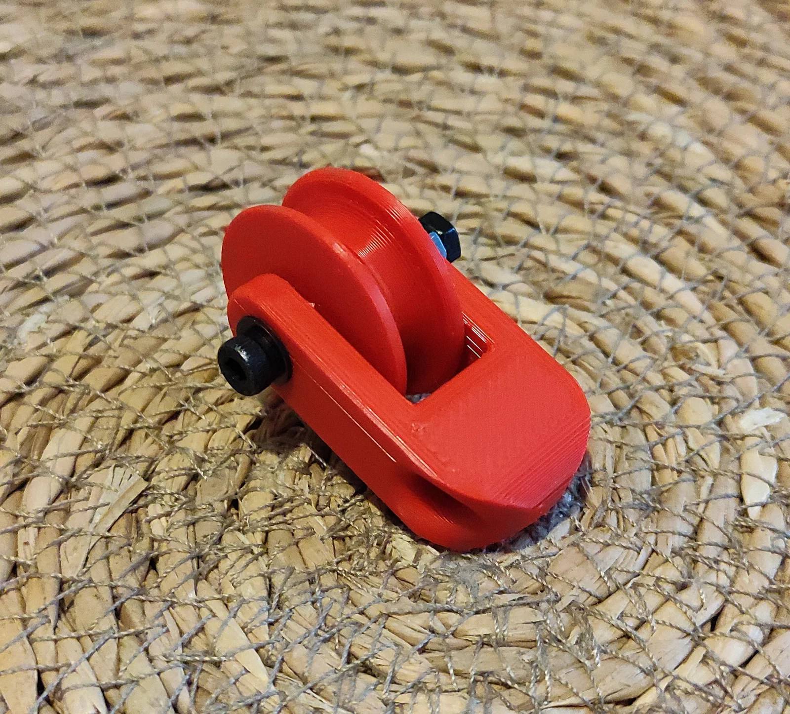 Ròng rọc này đơn giản và dễ in. Bánh xe gồm 2 phần, cần dán keo lại với nhau.