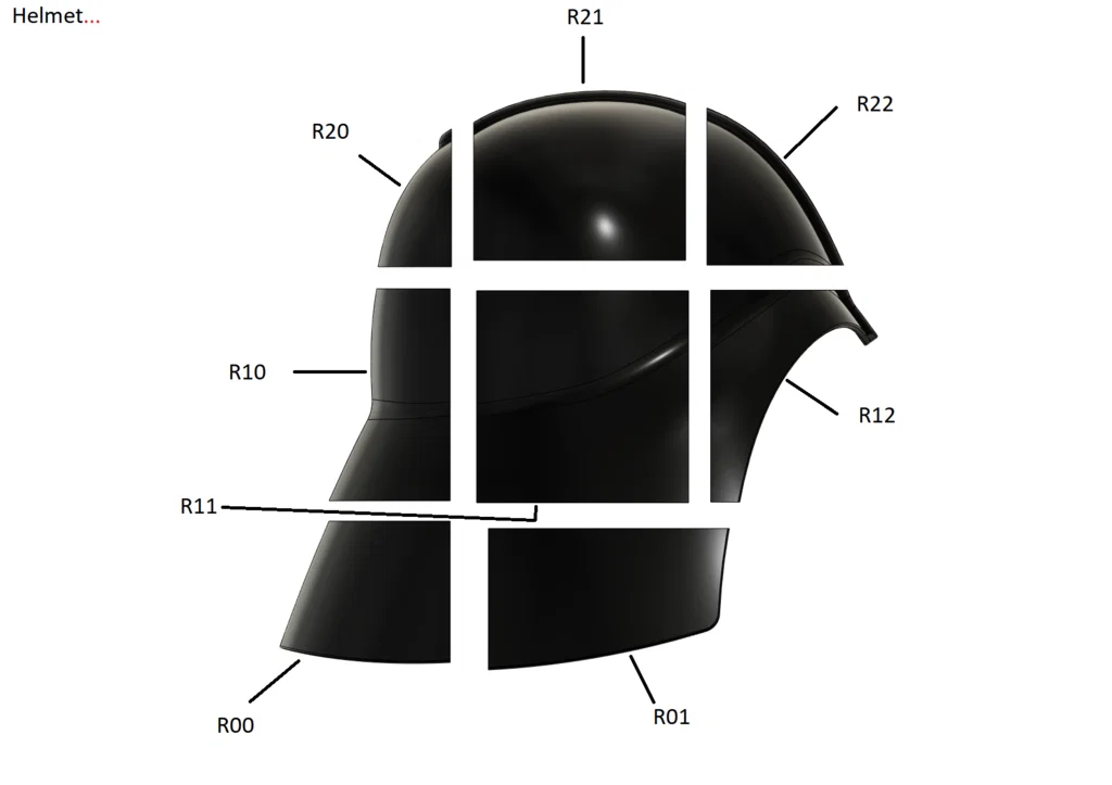 Sau 14 tháng thực hiện, bản remix Wearable Darth Vader Helmet đã hoàn thiện và được chia sẻ. Model được chia nhỏ cho máy in kiểu i3, có alignment holes để canh lắp, kèm hướng dẫn gắn velcro/nam châm và làm lenses bằng buck.