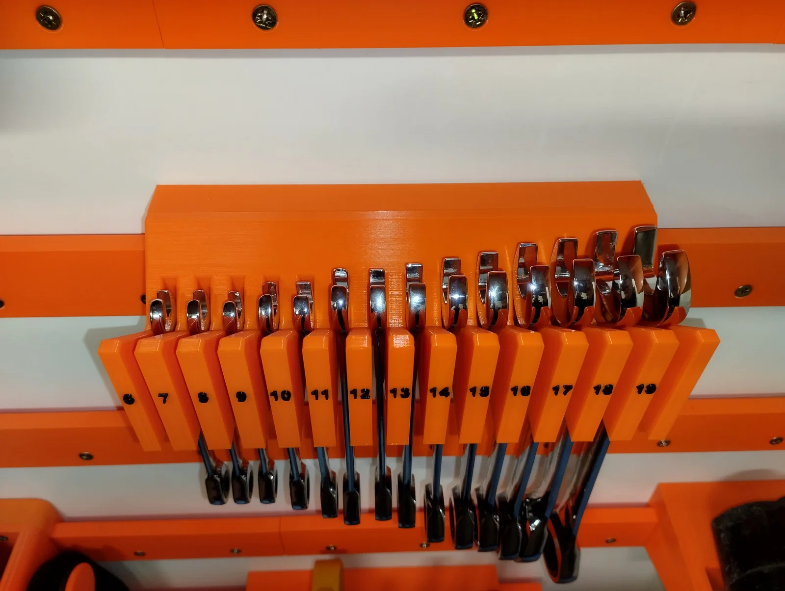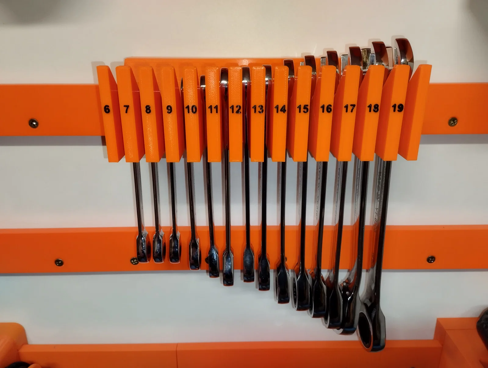 Thiết kế giá treo cờ lê tiện lợi gắn tường, sử dụng ốc M4x25 để liên kết. Sản phẩm được tối ưu để in 3D với nhựa PLA, không cần support, giúp góc làm việc của bạn trở nên gọn gàng và chuyên nghiệp hơn.