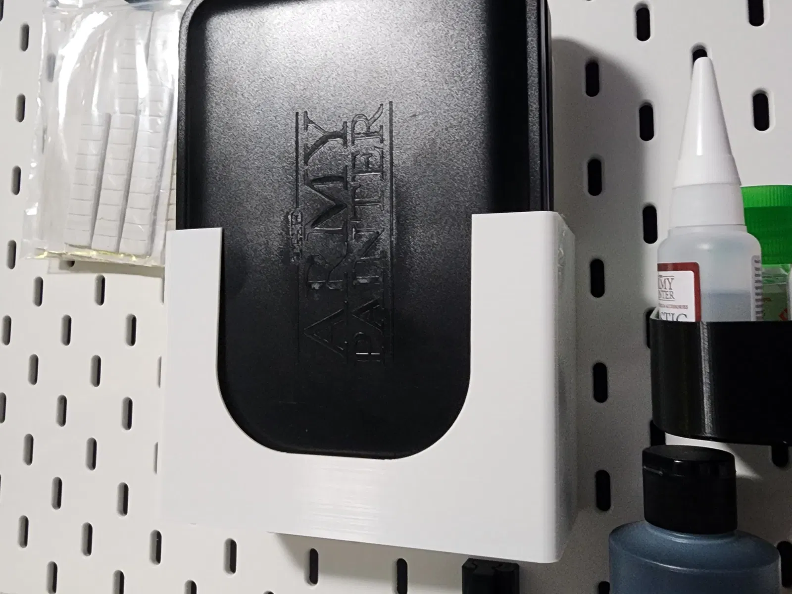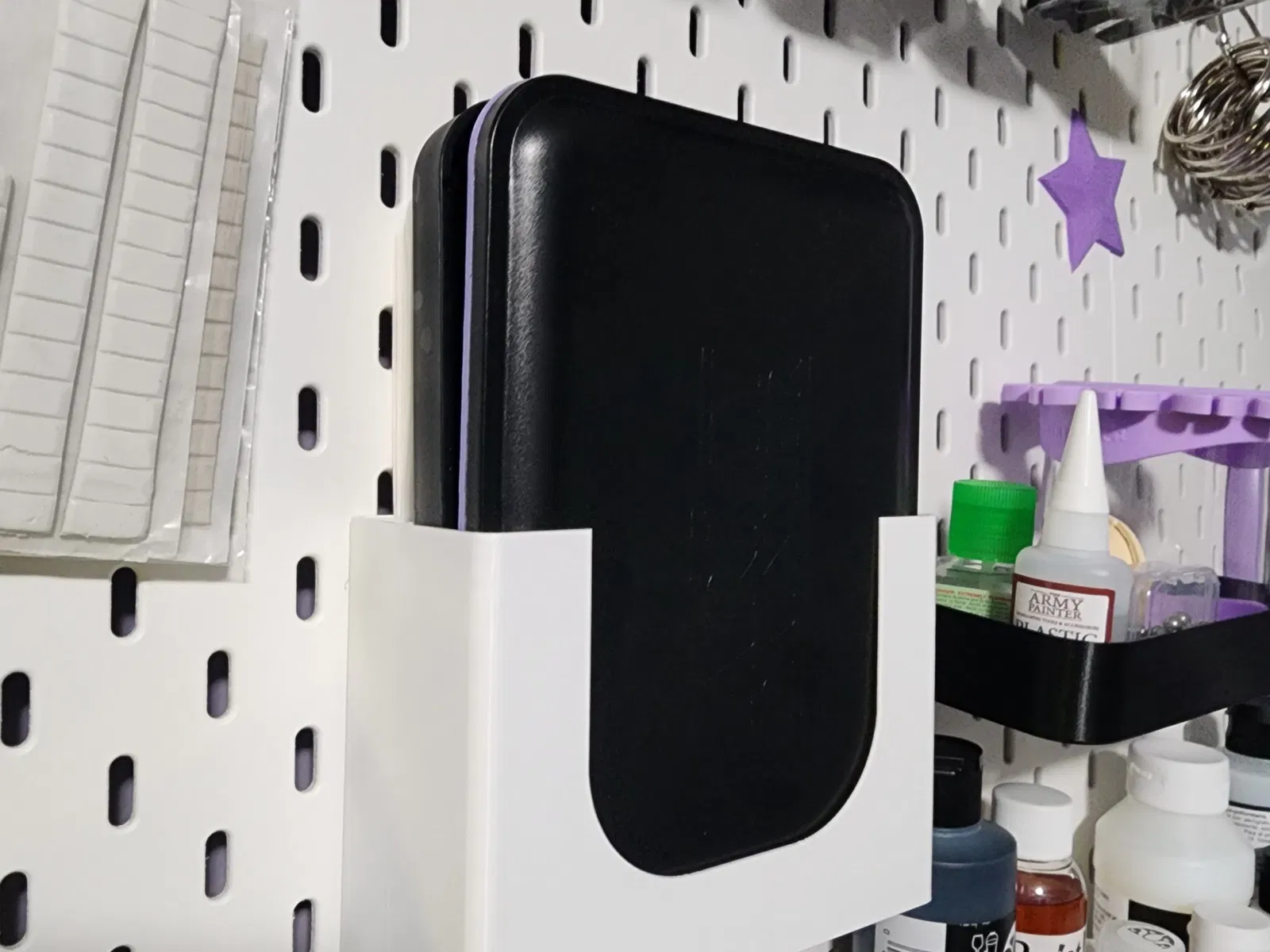 Cũng như nó nói trên nhãn - giá đỡ cho bảng màu ướt Army Painter với 2 khe ở phía sau để giữ bọt/miếng bọt biển và giấy bổ sung.