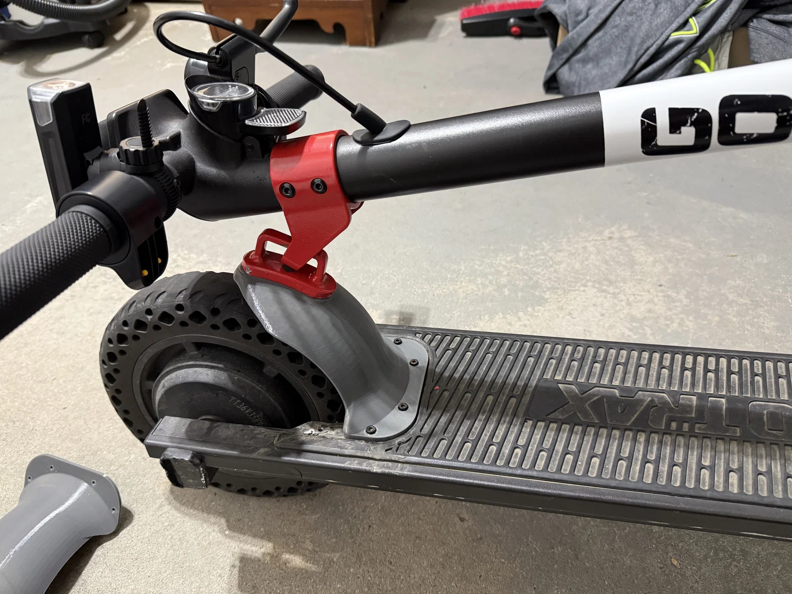 Mẫu dè sau thay thế bản rút gọn cho scooter GoTrax G4. Có điểm bắt để gắn folding clip bracket từ dè zin và thiết kế slotted screw để xử lý trường hợp ốc bị kẹt không tháo ra. Có file OBJ, STL, STEP.