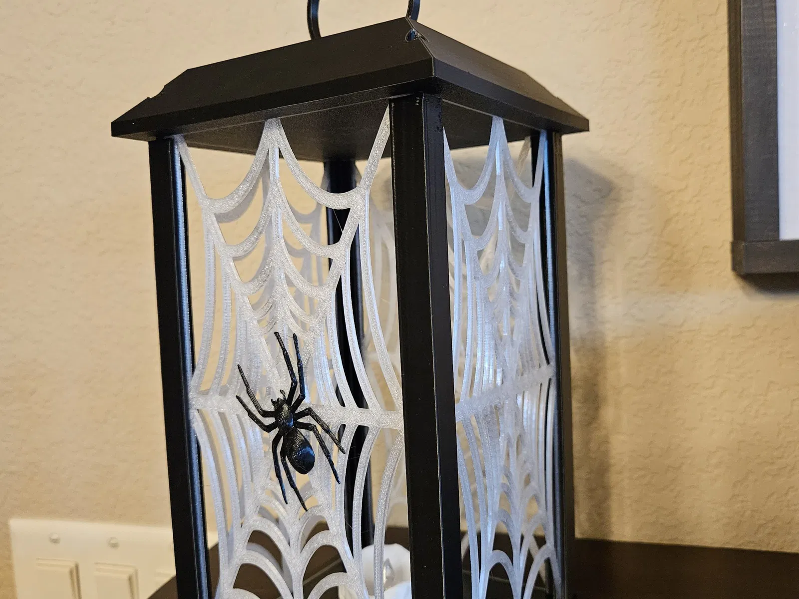 Treo đèn lồng Halloween Spiderweb với đèn led. Kích thước tổng thể 135mm x 135mm x 281mm.