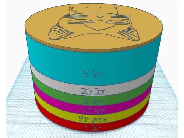 Lớp 1 thu thập các đồng xu 1 kr ở dưới cùng. Lớp 2 thu thập các đồng xu 50 øre/các đồng xu 1 kr đi qua (kích thước 20,25mm + 0,5mm). Lớp 3 thu thập các đồng xu 10 kr/các đồng xu 50 øre đi qua (kích thước 21,50mm + 0,5mm). Lớp 4 thu thập các đồng xu 2 kr/các đồng xu 10 kr đi qua (kích thước 23,25mm + 0,5mm). Lớp 5 thu thập các đồng xu 20 kr/các đồng xu 2 kr đi qua (kích thước 24,50mm + 0,5mm). Lớp 6 thu thập các đồng xu 5 kr/các đồng xu 20 kr đi qua (kích thước 27,00mm + 0,5mm). Lớp 7 là nắp để ngăn các đồng xu rơi ra ngoài. Nó cũng có một hình ảnh trên đó để vui vẻ.