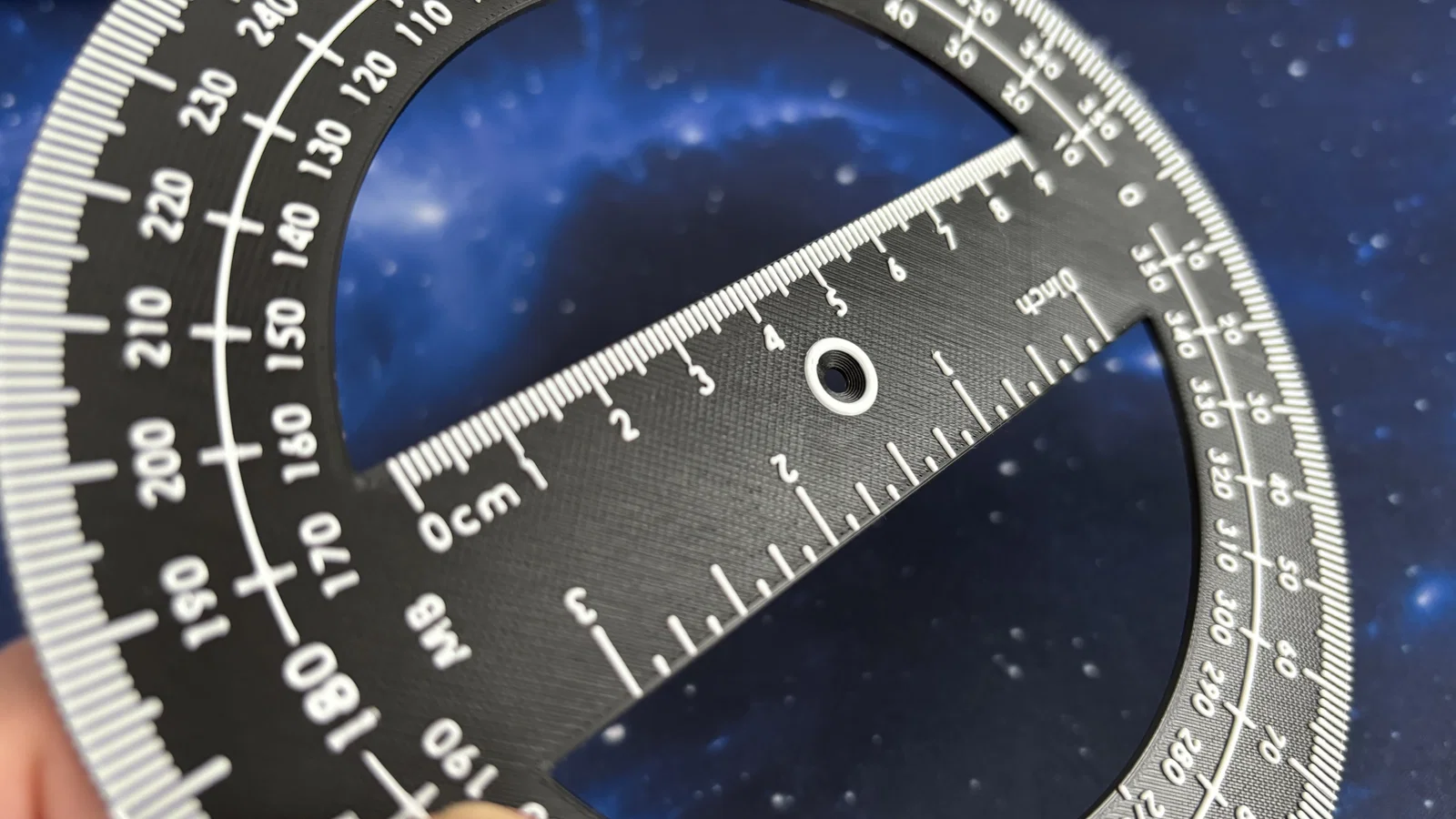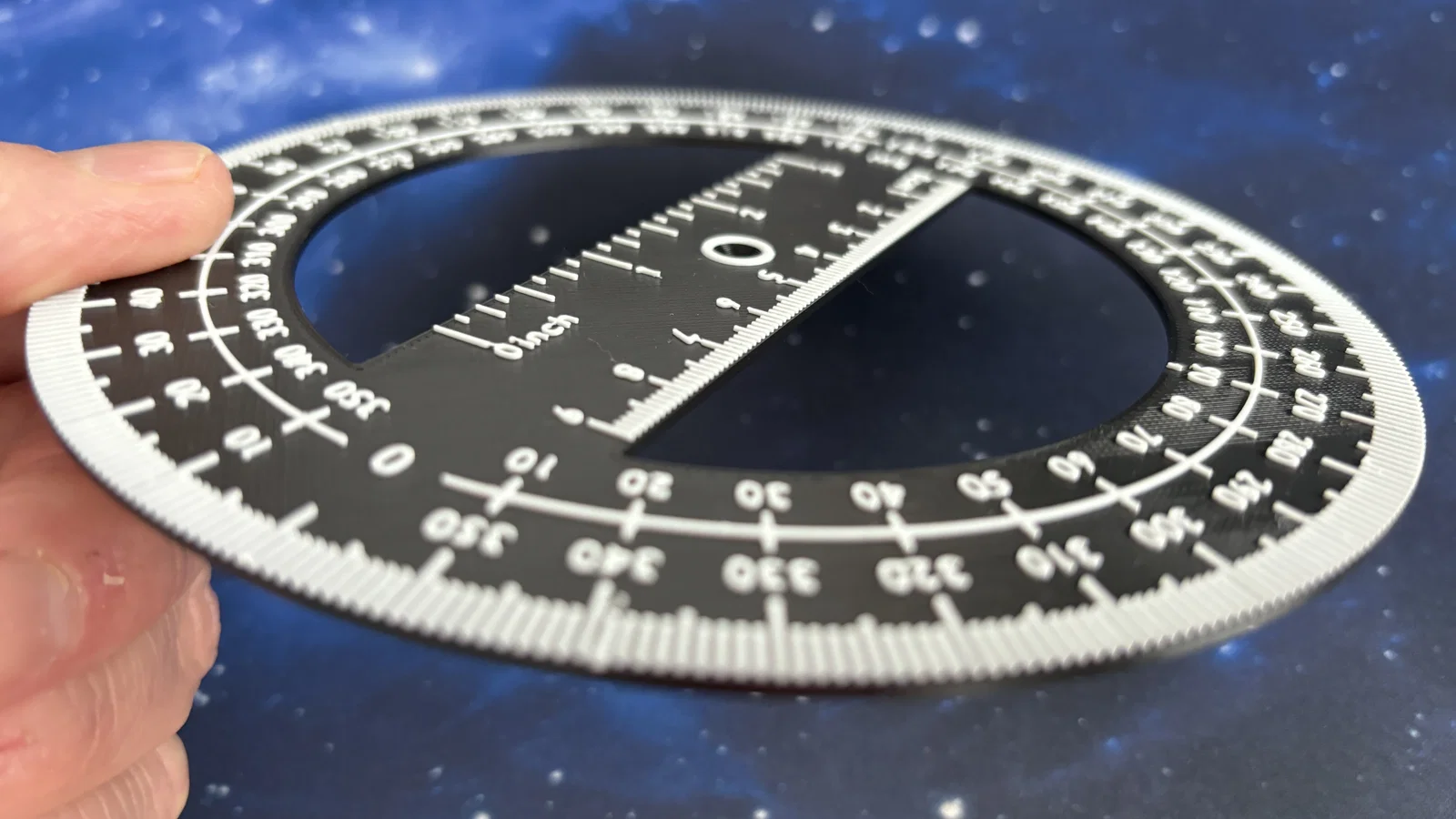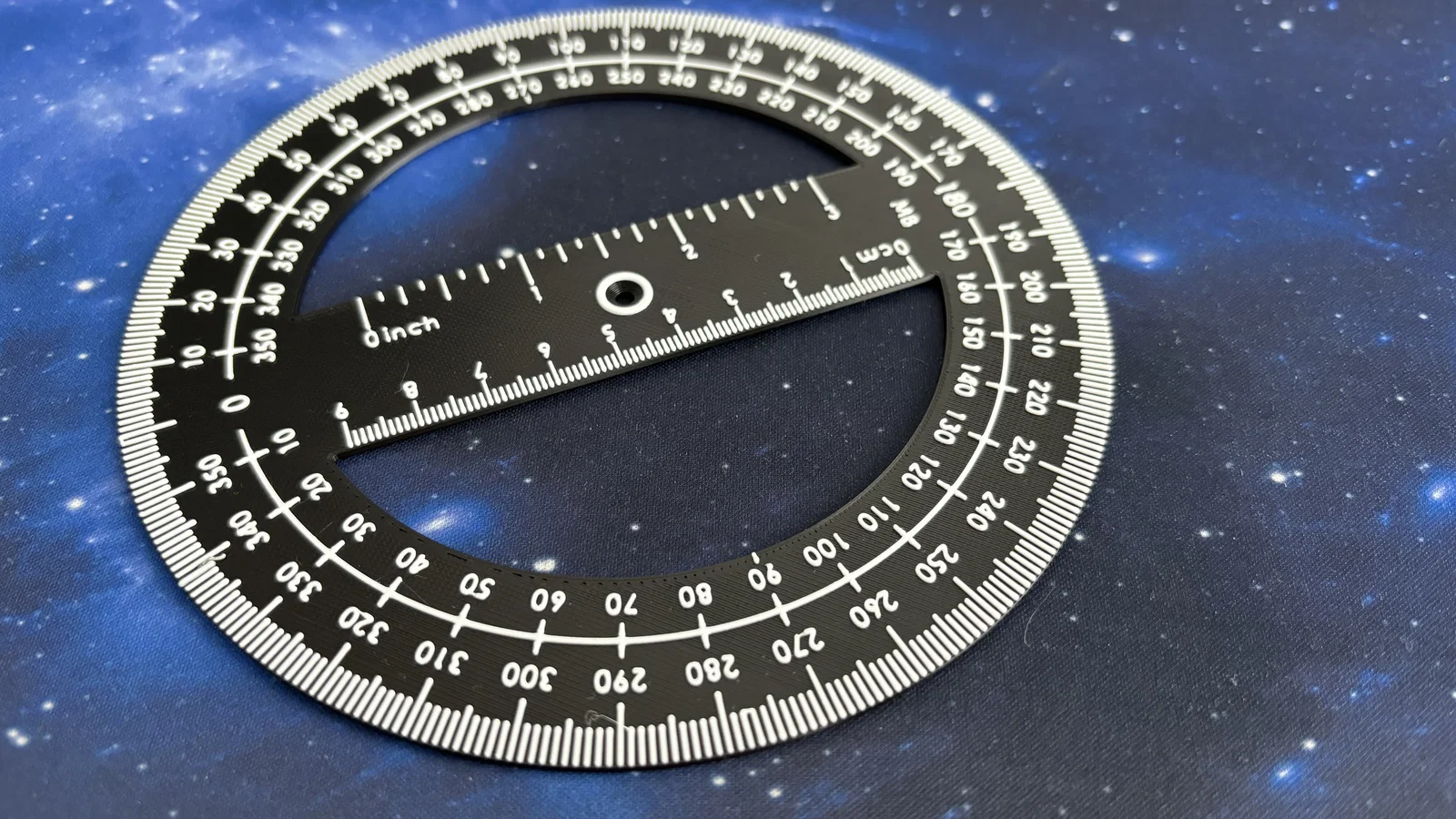 Đây là một phụ kiện 3D hữu ích cho những ai cần đo đạc chính xác trong công việc kỹ thuật hoặc học tập. Thước đo góc 360 độ này được thiết kế tinh gọn với kích thước 150 x 150 x 1.5mm, tích hợp cả vòng chia độ tròn đầy đủ và thước kẻ thẳng ở giữa. Thiết kế này giúp bạn vừa có thể xác định góc độ, vừa có thể đo nhanh chiều dài lên đến 9cm hoặc 3 inch mà không cần đổi sang nhiều loại thước khác nhau.