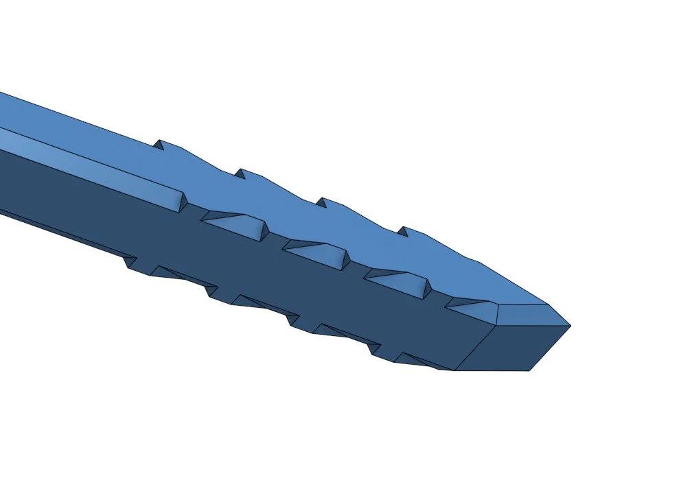 Mẫu cọc lều (Tent Peg) dài 200mm được cải tiến để cắm chắc hơn khi đi camping/outdoor. Gợi ý in bằng PETG với nozzle 0.4, layer 0.3, infill 30–100%, 5 perimeters và 8 lớp top/bottom.