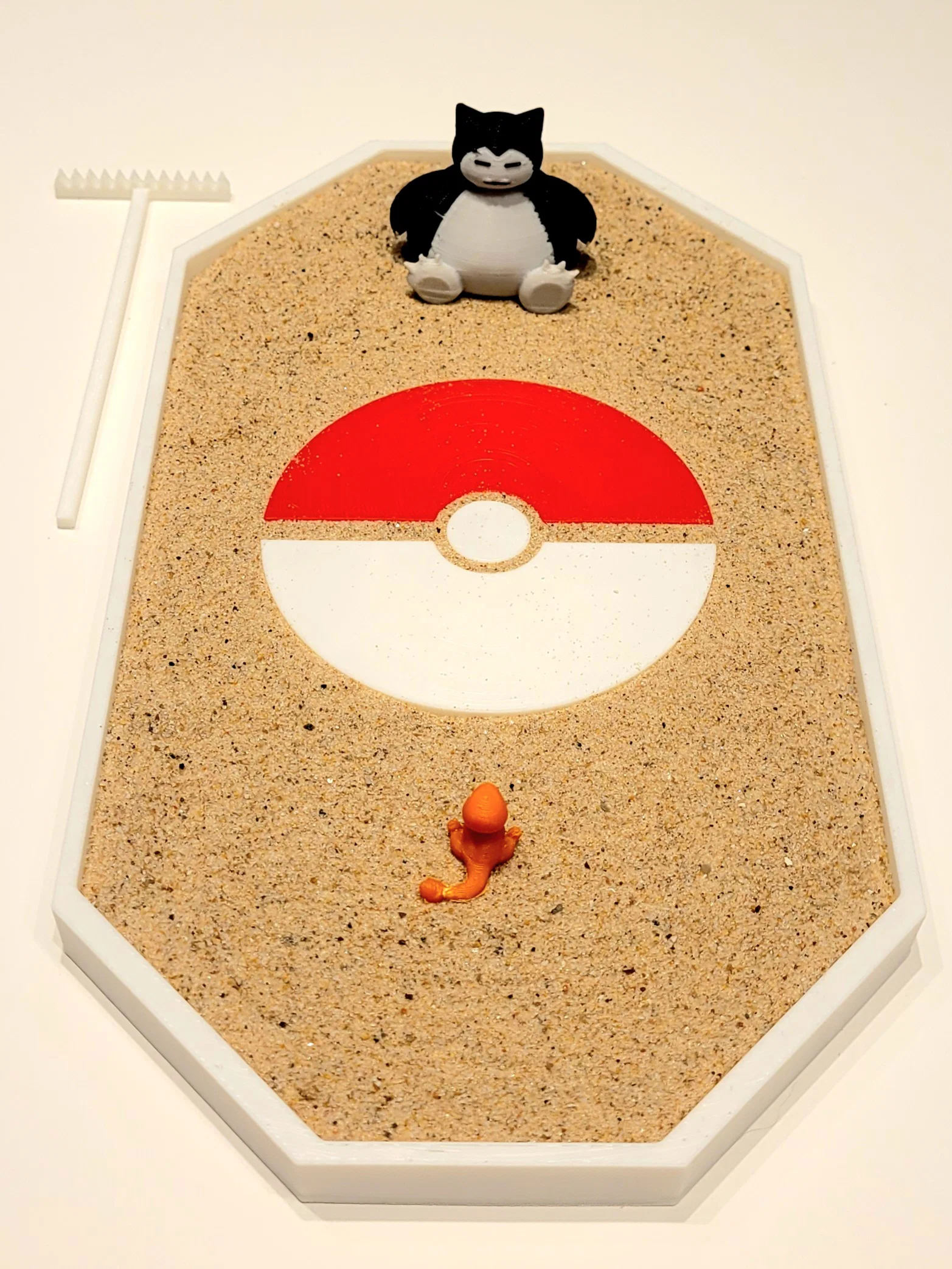 Zen Poké Arena là mô hình lai giữa đấu trường Pokémon và vườn thiền để trưng mấy poké print bạn đang có sẵn. In khá đơn giản, không cần supports; có thể in multicolor tùy thích. Thiết kế bằng Tinkercad.