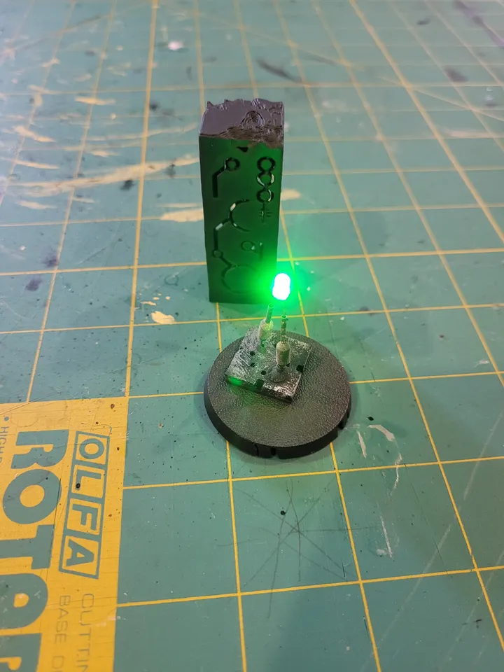 Bản remix Necron Obelisk có khoét rỗng để gắn LED, điện trở và pin nút trên đế 40mm. Có kèm support tower, gợi ý dùng brim. Cập nhật thêm mẫu Obelisk thứ hai, tách 2 phần để in và cần dán keo.