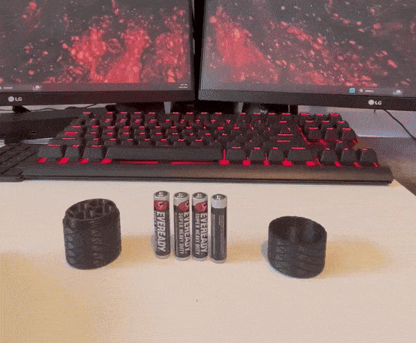 Hộp đựng pin AAA nhỏ gọn để rải sẵn trong xe, bếp hay văn phòng. Chứa 4 viên AAA, nắp vặn ren, bề mặt nhám dễ mở và thiết kế bền bỉ. In 3D không cần supports, ren có clearance.