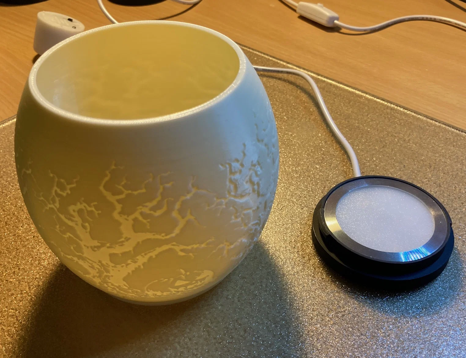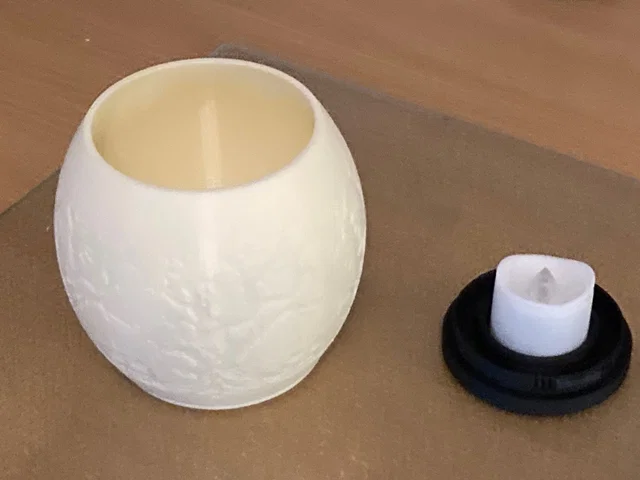 Cũng có sẵn 3 file STL: phần globe, phần puck base, và phần Tea Light Base.