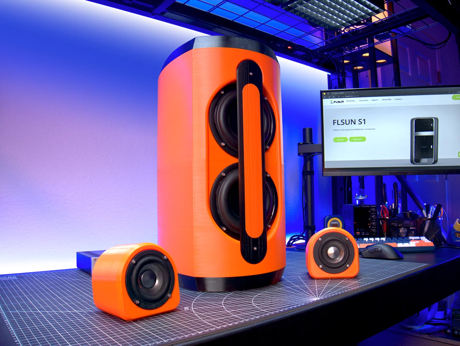 Subwoofer active bass-reflex được tune theo series, dùng 2 driver Tang Band W5-1138SMF đấu song song và plate amp Dayton Audio SPA100-D. Khuyến nghị in PLA/PETG, 4 walls, gyroid infill ≥20%.