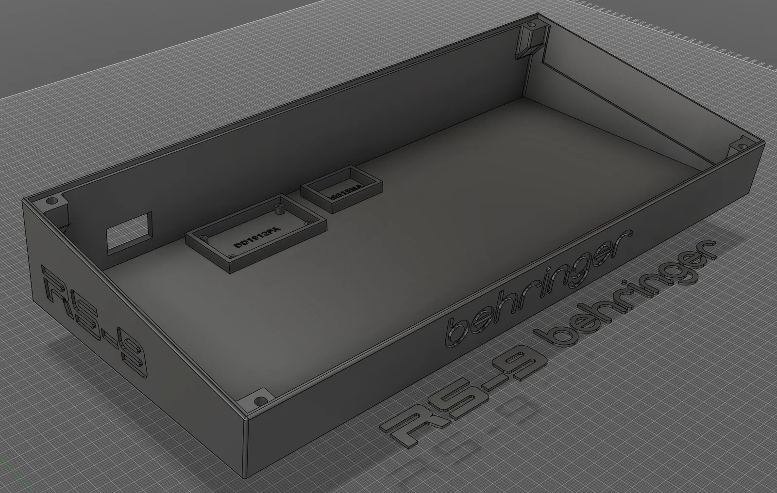 Case cho Behringer RS-9 Sequencer giúp dùng standalone thay vì gắn Eurorack. Thiết kế ôm khít, dùng threaded inserts M3x5.7, có tuỳ chọn logo inlays, power socket/switch và rãnh dán foam tape 10mm.