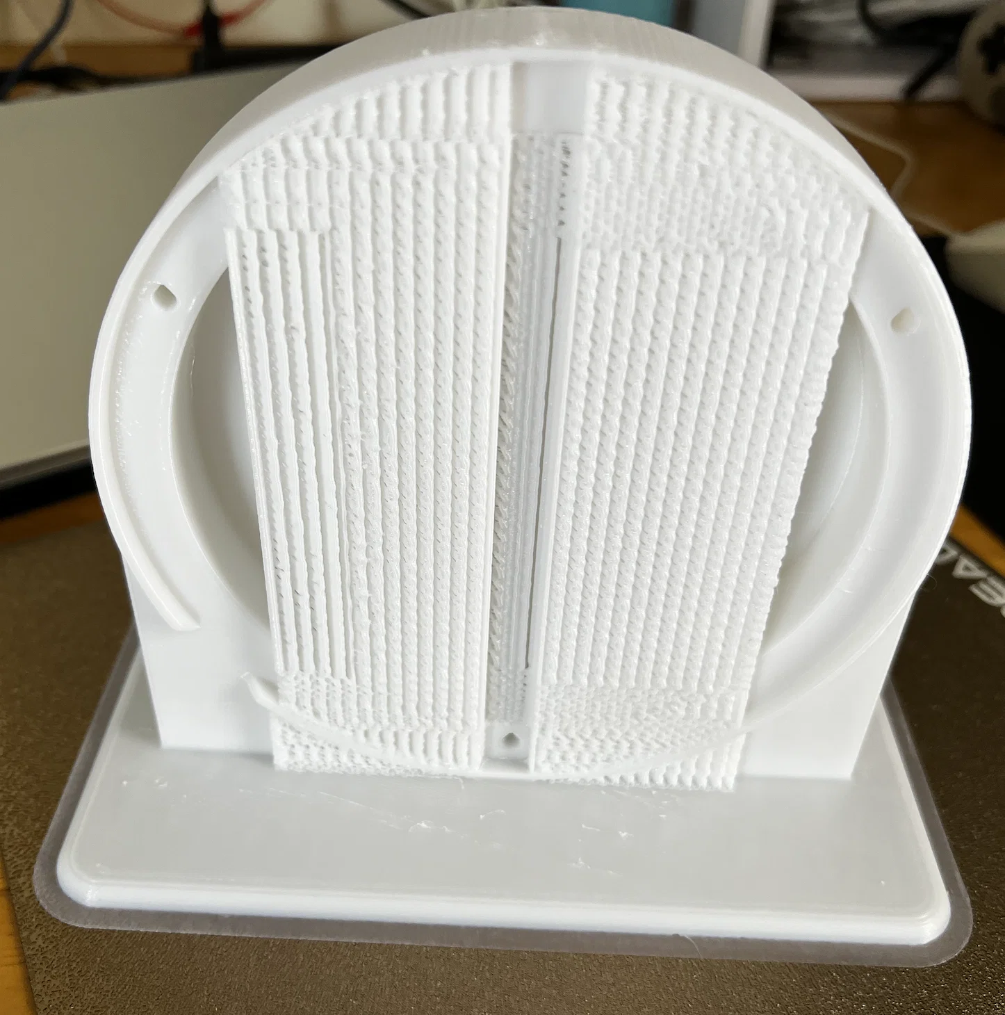 Mình in mẫu bằng filament PETG và dùng 5 perimeters với 5% infill, layer height 0.28mm, support style: Snug.