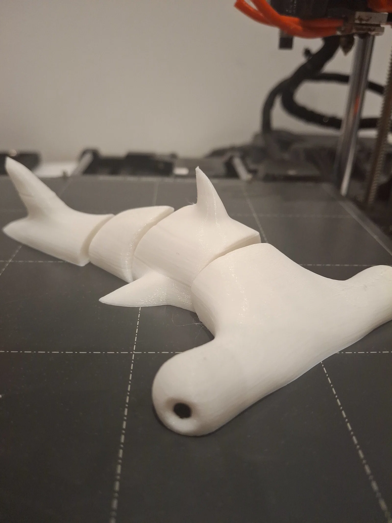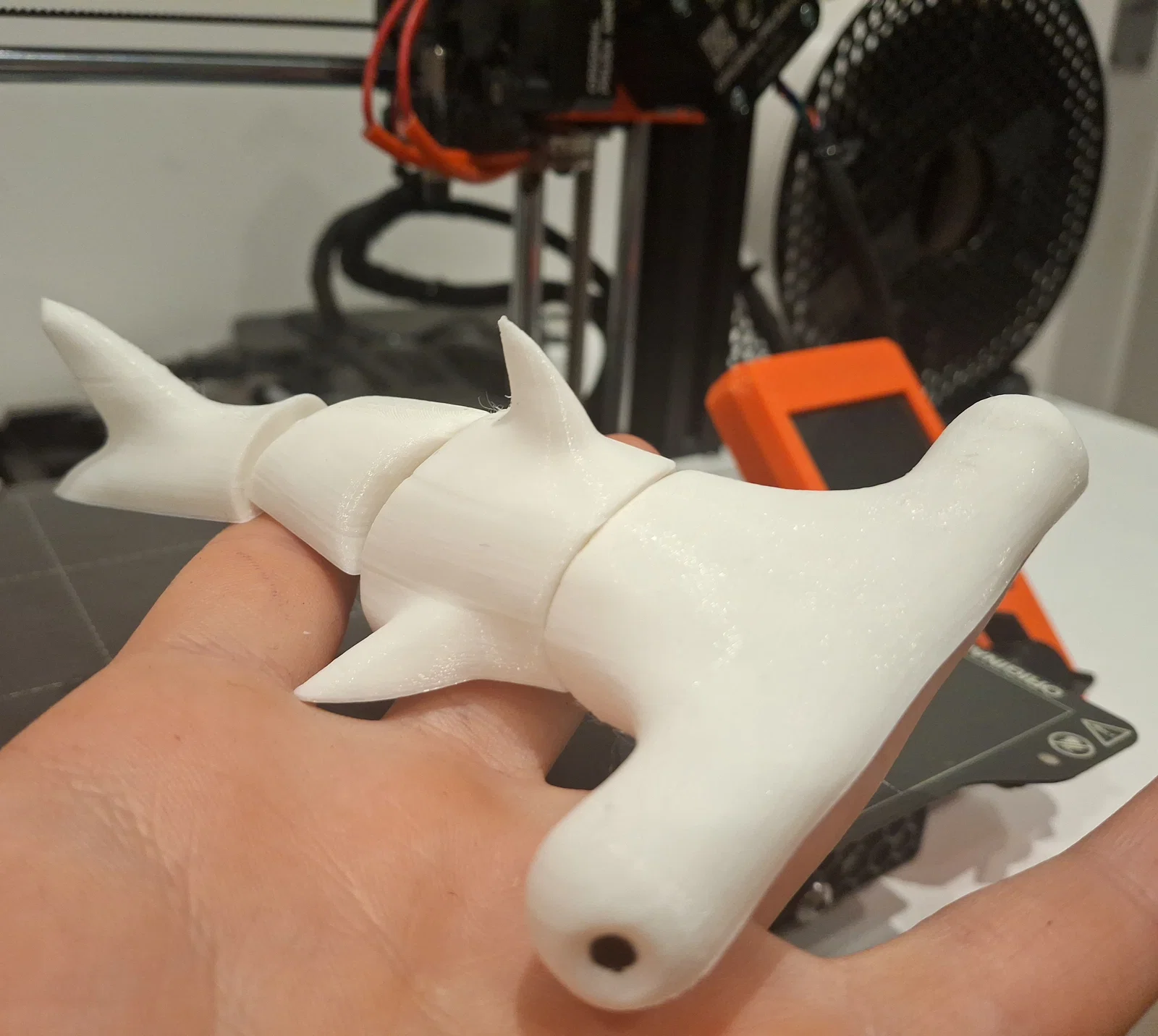 Mẫu cá mập đầu búa dạng articulated siêu dễ thương, in tại chỗ (print-in-place) một lần là xong và không cần supports. In đẹp ở layer height thấp, 0.2mm vẫn ổn; có thể scale tuỳ độ chính xác máy.