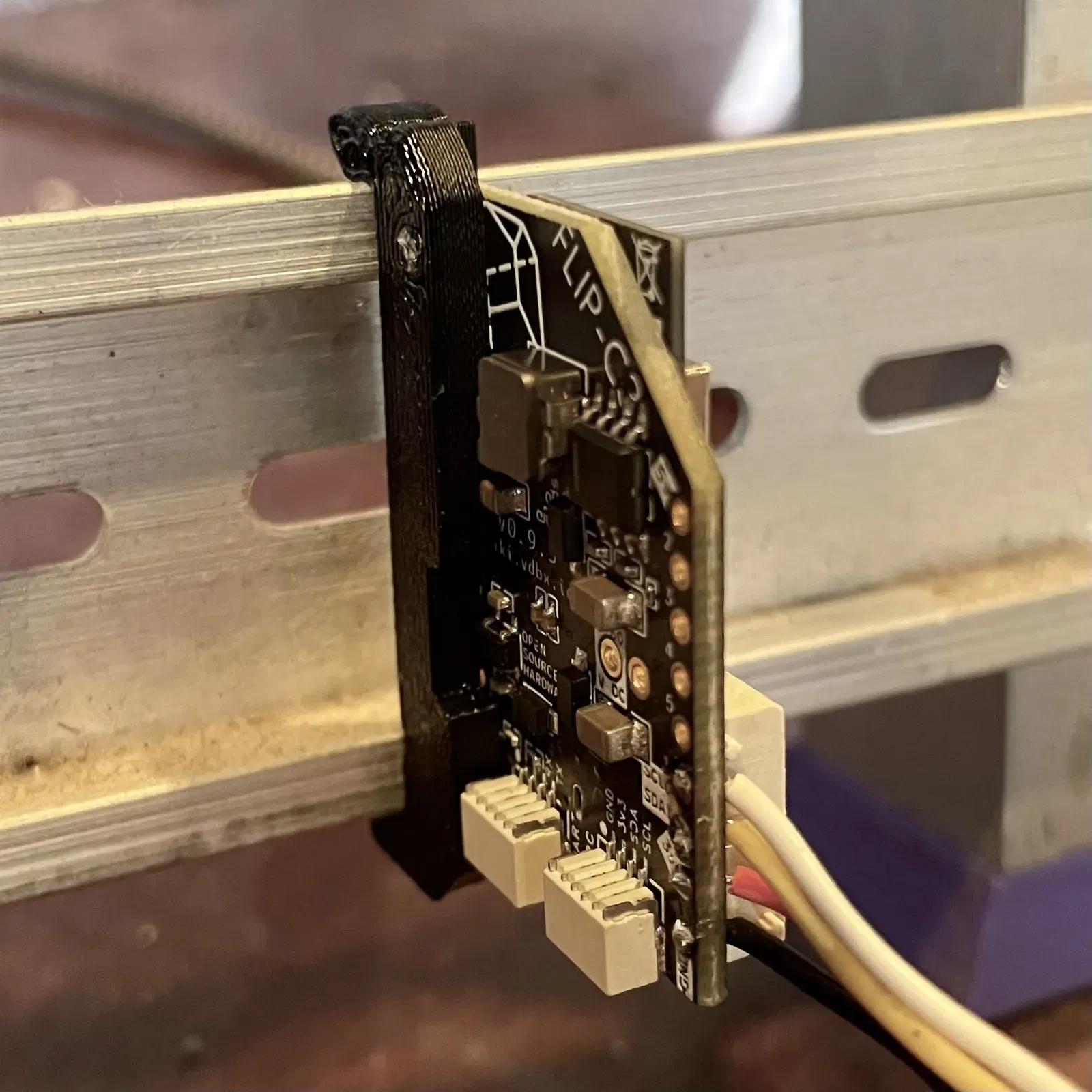 Tôi đã thiết kế FLIP_C3, có sẵn tại vdbx.io, với ý định thay thế các vi điều khiển hiện tại của tôi đang chạy ESPHome. Nhiều cái trong số đó nằm trong các vỏ DIN rail nên tôi đã thiết kế bộ chuyển đổi DIN rail cho FLIP_C3.