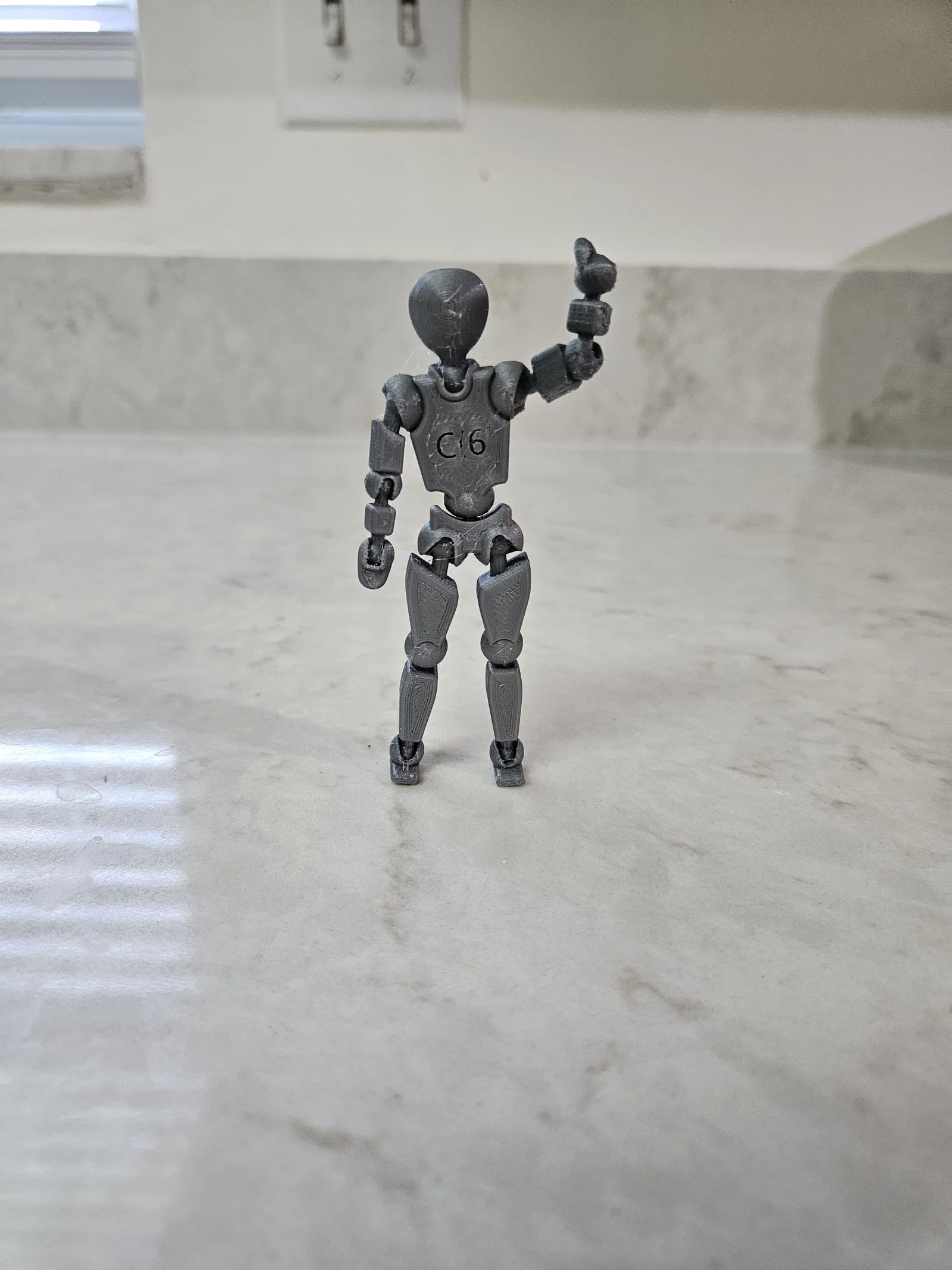 Mannequin giải phẫu cỡ nhỏ dùng khớp print-in-place để khỏi phải in rời rồi lắp. Thiết kế tối ưu dưới 100 mm, dung sai khít tạo ma sát để dễ tạo dáng. Có kèm file STEP; lưu ý scale up sẽ làm khớp lỏng.