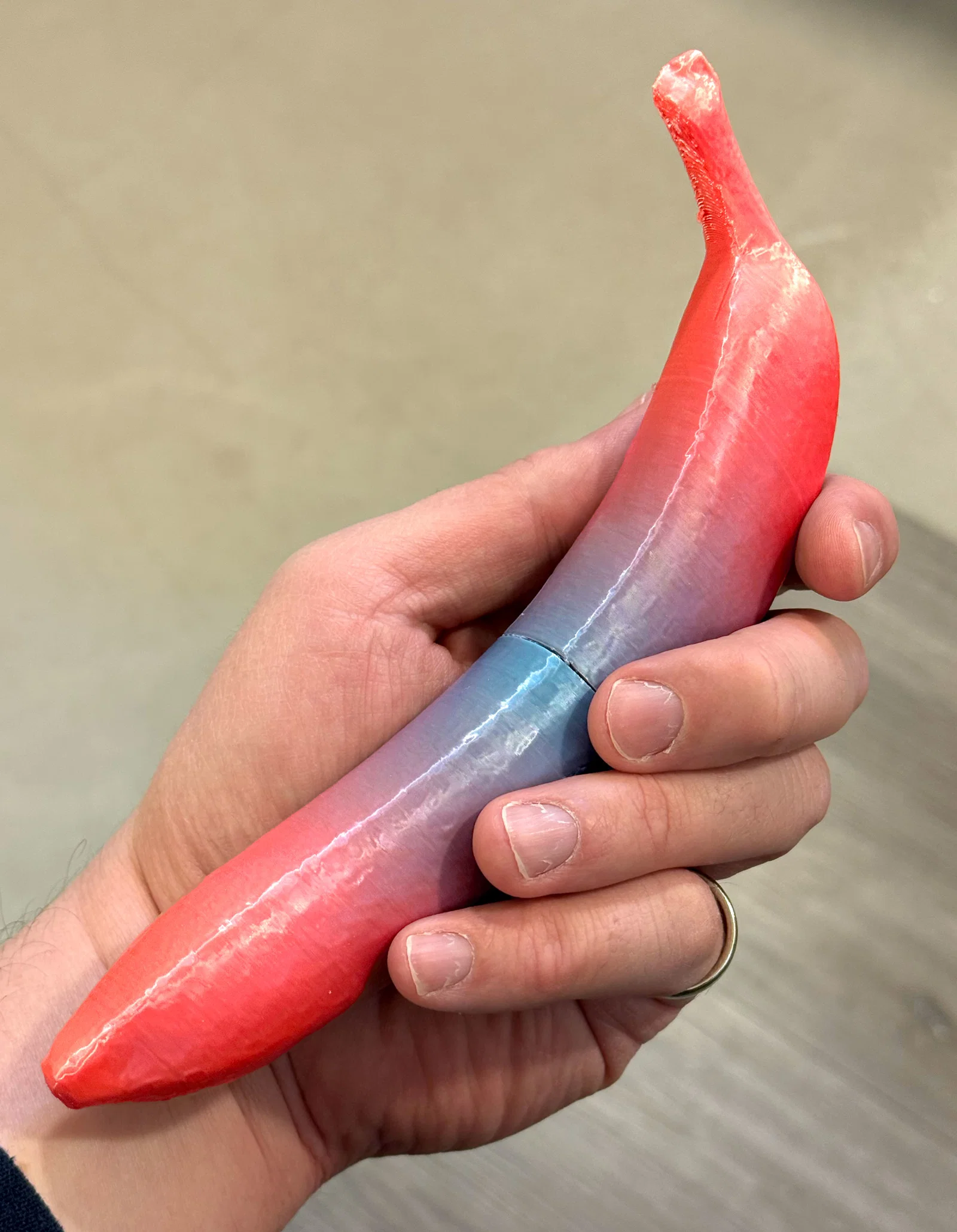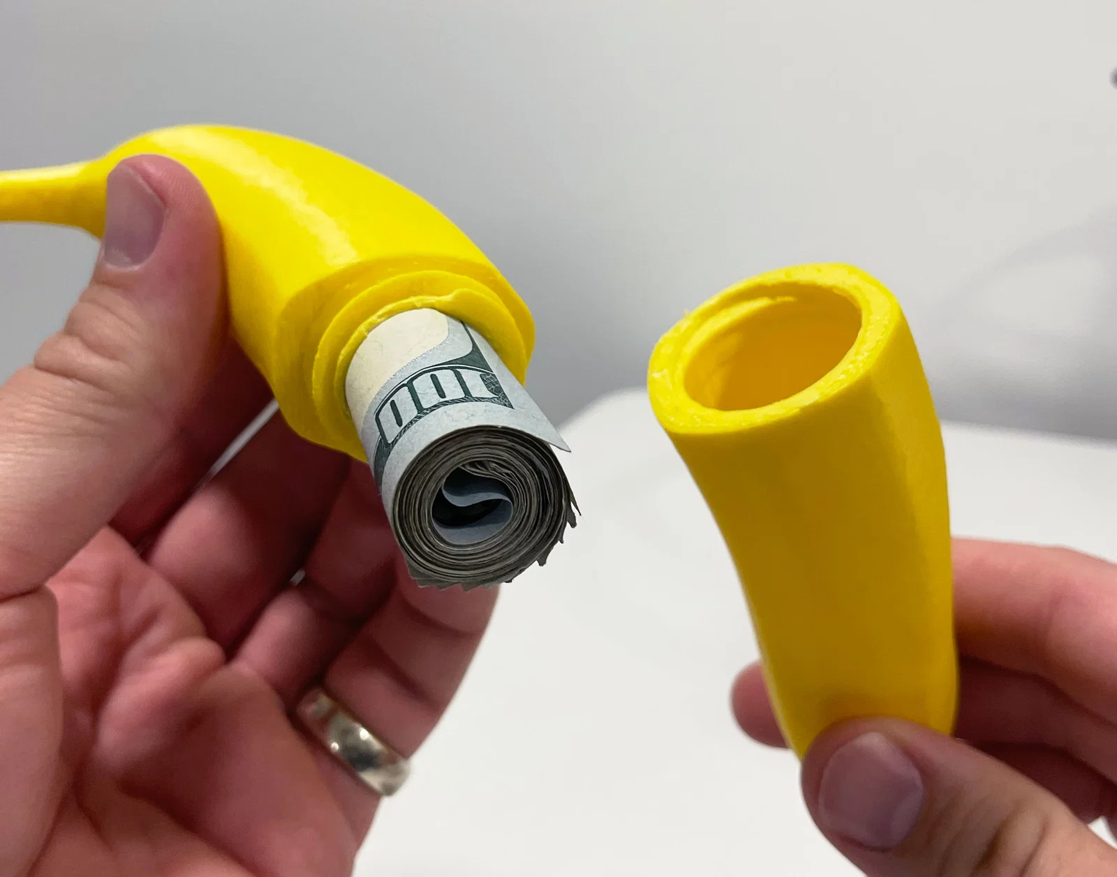 Một trái chuối có thể vặn tách làm đôi để lộ ngăn chứa bí mật cho bất cứ thứ gì bạn muốn. Ren mới cập nhật khít và chắc; lúc đầu cần vặn tới vặn lui vài lần cho trơn, sau đó dùng ổn định.