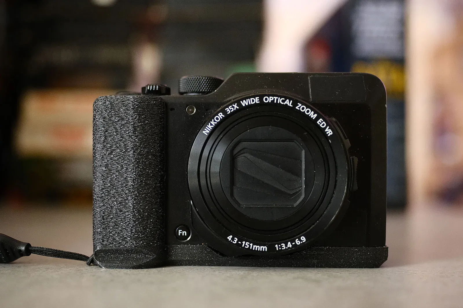 Một tay cầm, đế tripod và đầu nối dây đeo bên phải cho Nikon Coolpix A1000. Hình ảnh ở đây là Prusament PETG màu đen galaxy. Tôi khuyên bạn nên thêm một lớp da mềm với bộ điều chỉnh hộp để cảm giác tốt hơn!