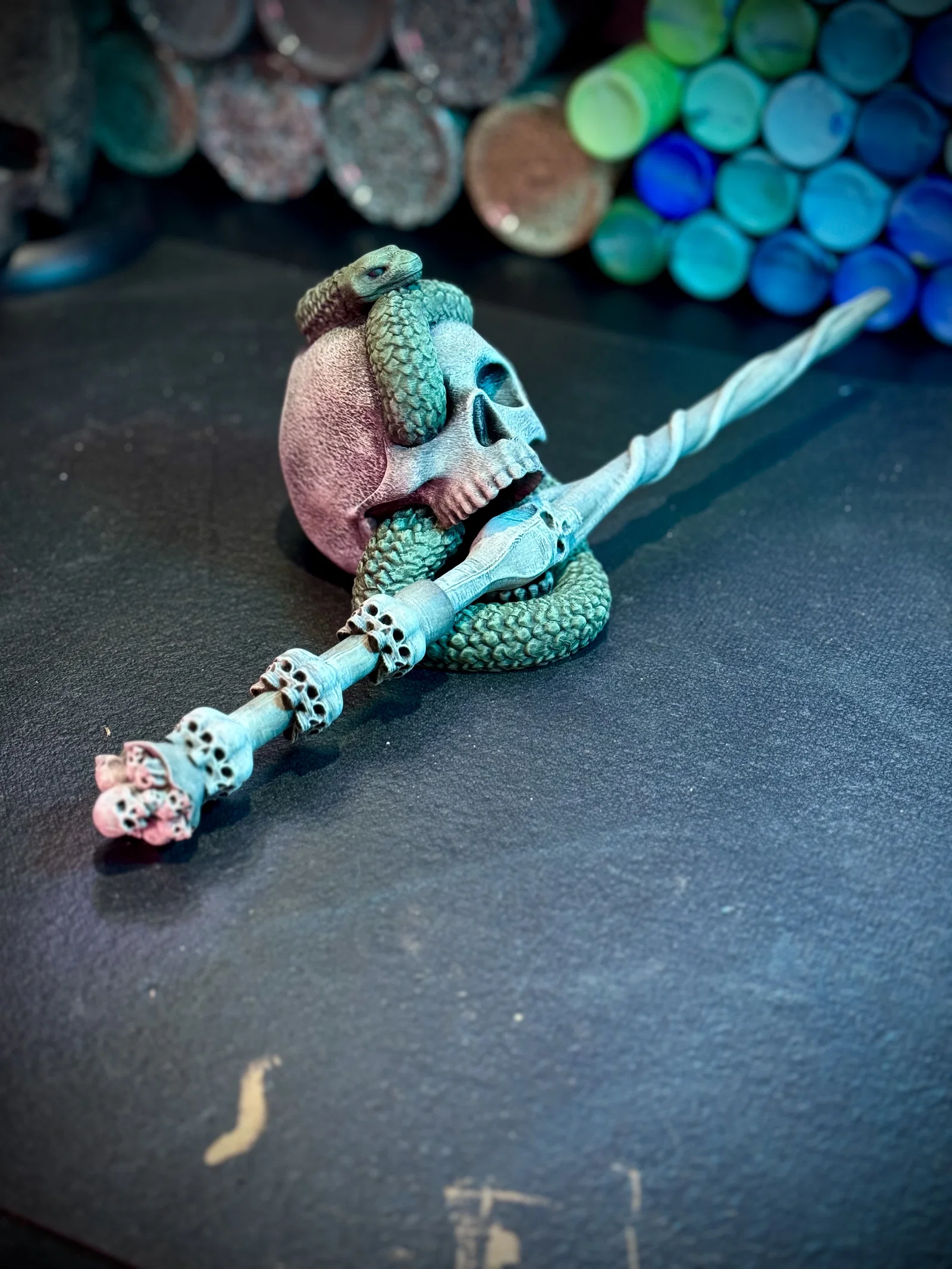 Khám phá câu chuyện huyền bí về giá đỡ đũa phép The Forgotten Wand Holder với tạo hình đầu lâu bị rắn quấn. Sản phẩm không cần hỗ trợ in, hoàn hảo cho góc làm việc đậm chất gothic. Đăng ký Patreon để nhận quyền thương mại ngay hôm nay!