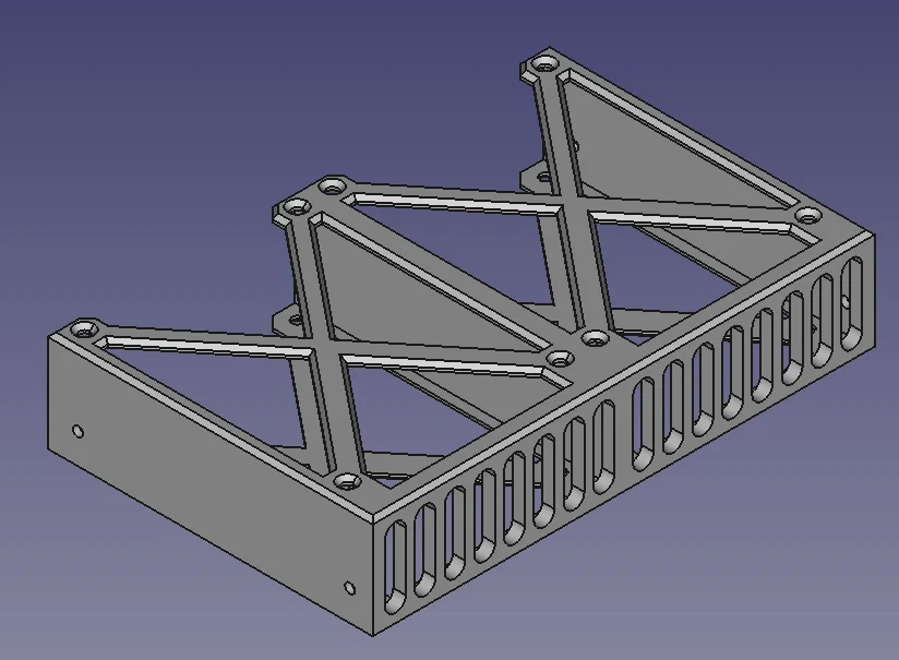 Khay chuyển từ bay 5.25" sang gắn 4 ổ HDD 2.5" dạng internal, không thò ra mặt trước nên nhìn case gọn sạch. Có lỗ bắt đúng chuẩn bay 5.25"; cần 4 ốc M3. Kèm file FreeCAD để chỉnh kích thước.