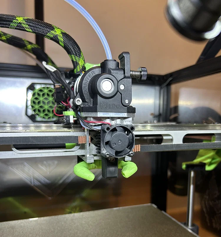 Bạn có thể dùng Trihorn hoặc short fan duct; trượt “Hanging Man” lên hết cỡ là nó sẽ khớp với chiều dài hotend một cách vừa vặn.