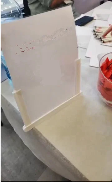 Kệ để bàn trưng bày giấy khổ A4 kiểu tối giản, phù hợp đặt menu, bảng thông báo, tờ rơi hay tài liệu. Thiết kế gọn chắc, giữ giấy ổn định trên bàn/quầy và in nhanh, không cần supports.