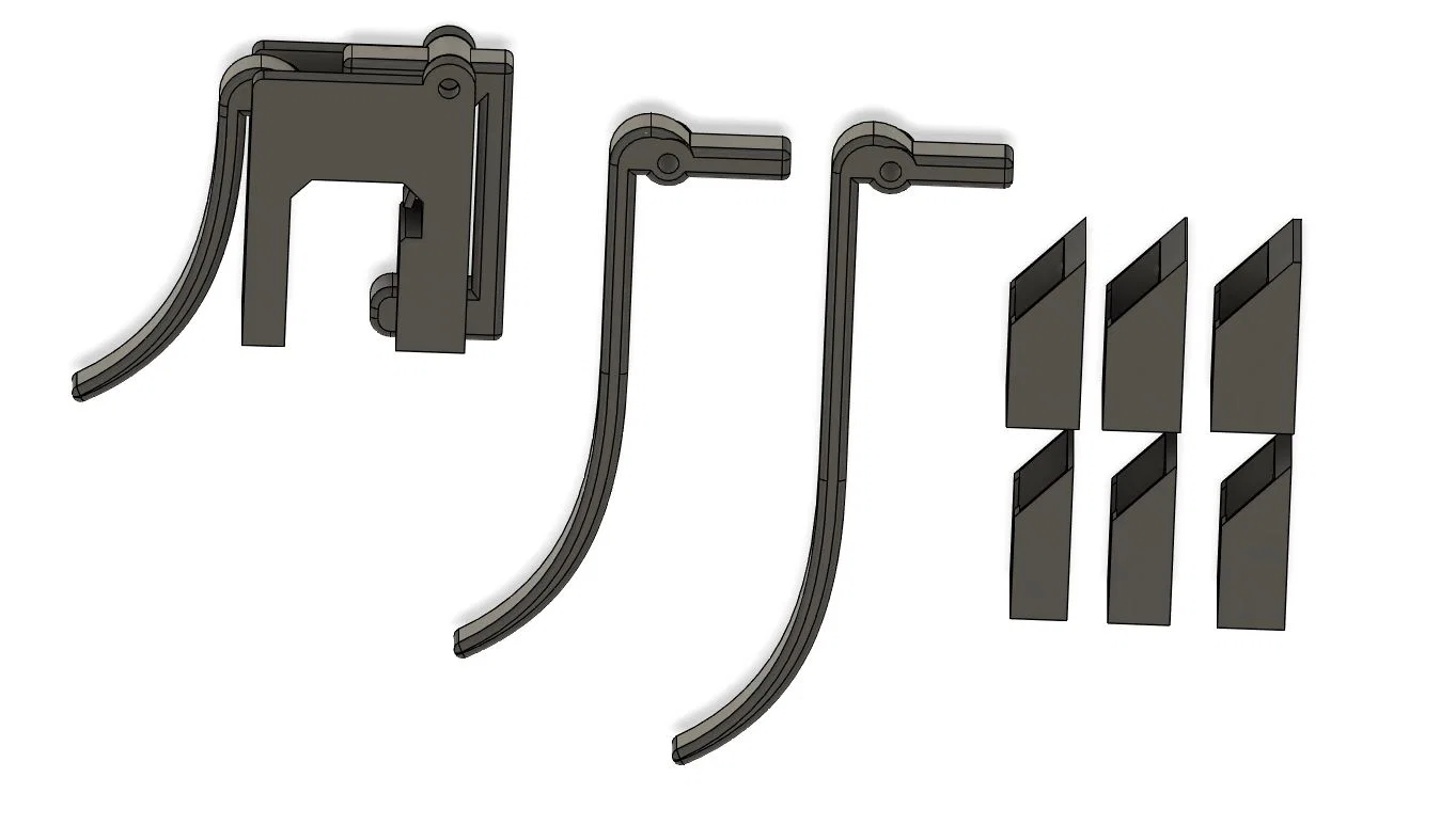 PETG chạy ổn nhất với thiết kế lò xo tích hợp. PLA vẫn xài được một thời gian, nhưng mình nghĩ sẽ bị yếu độ đàn hồi (spring back) hoặc về lâu dài có thể bị gãy.