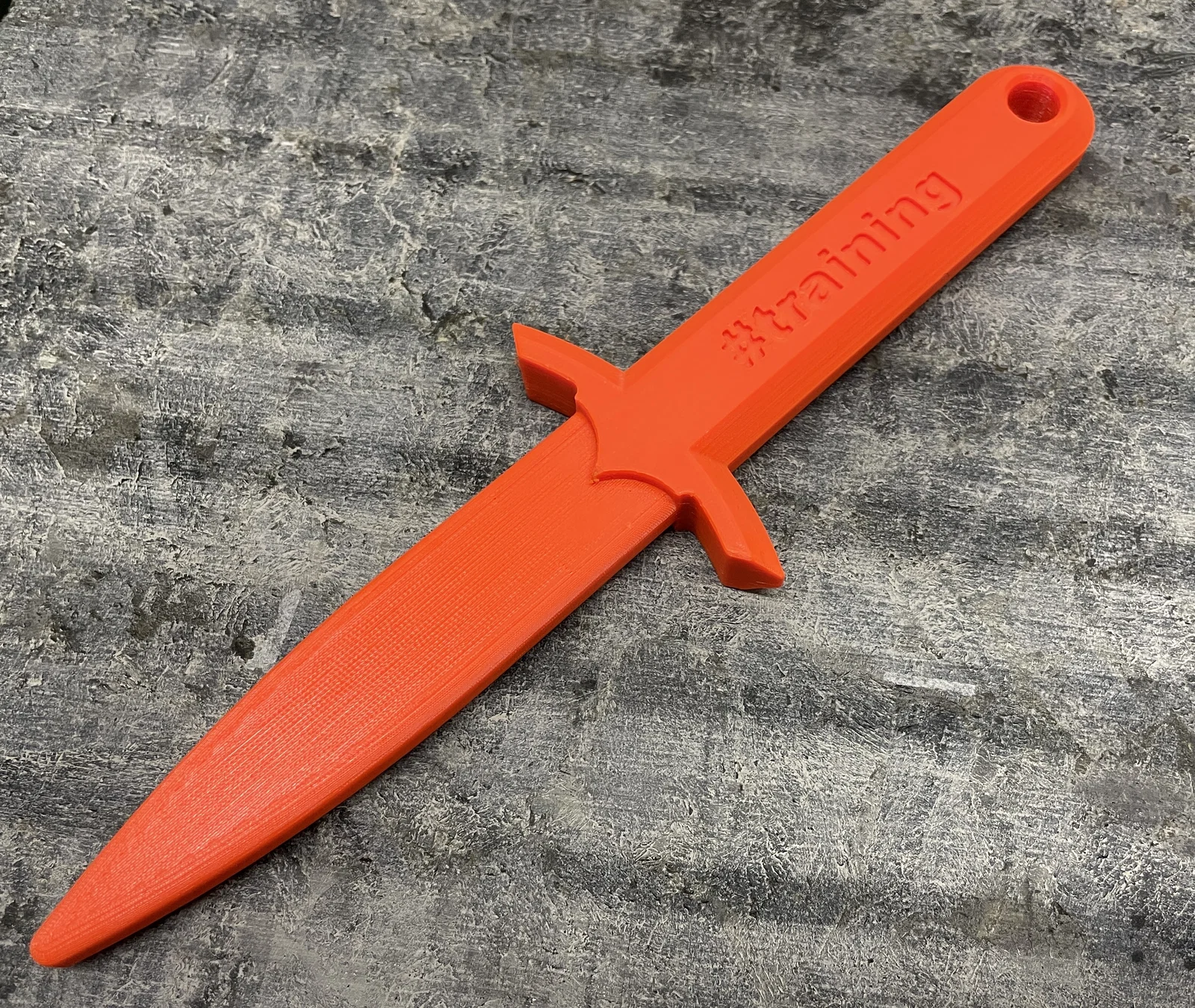 Trainingsdolch / training dagger dùng cho Force on Force Training. Khuyến nghị in với 100% infill để chắc hơn. Có kèm Gcode bản có chữ và file model bản không chữ để bạn chọn.