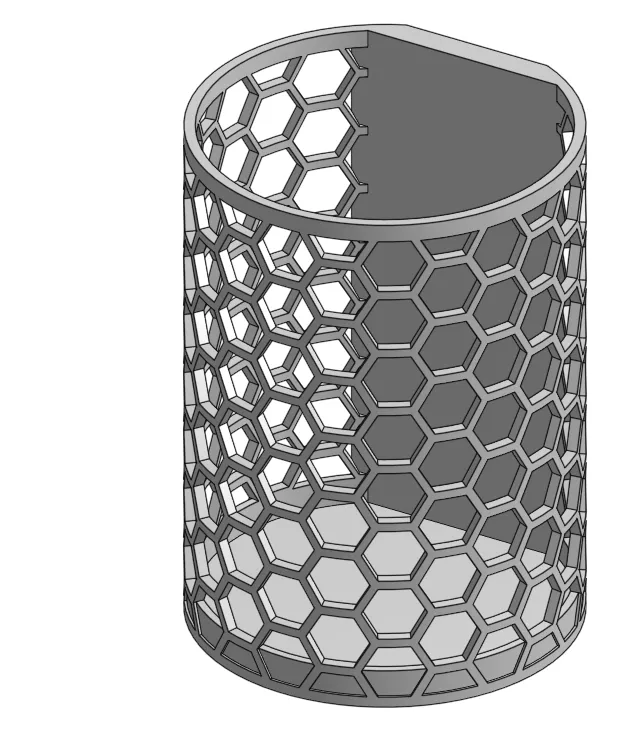 Một chiếc cốc bút chì mẫu tổ ong được thiết kế để gắn vào máy tính 500 qube.
