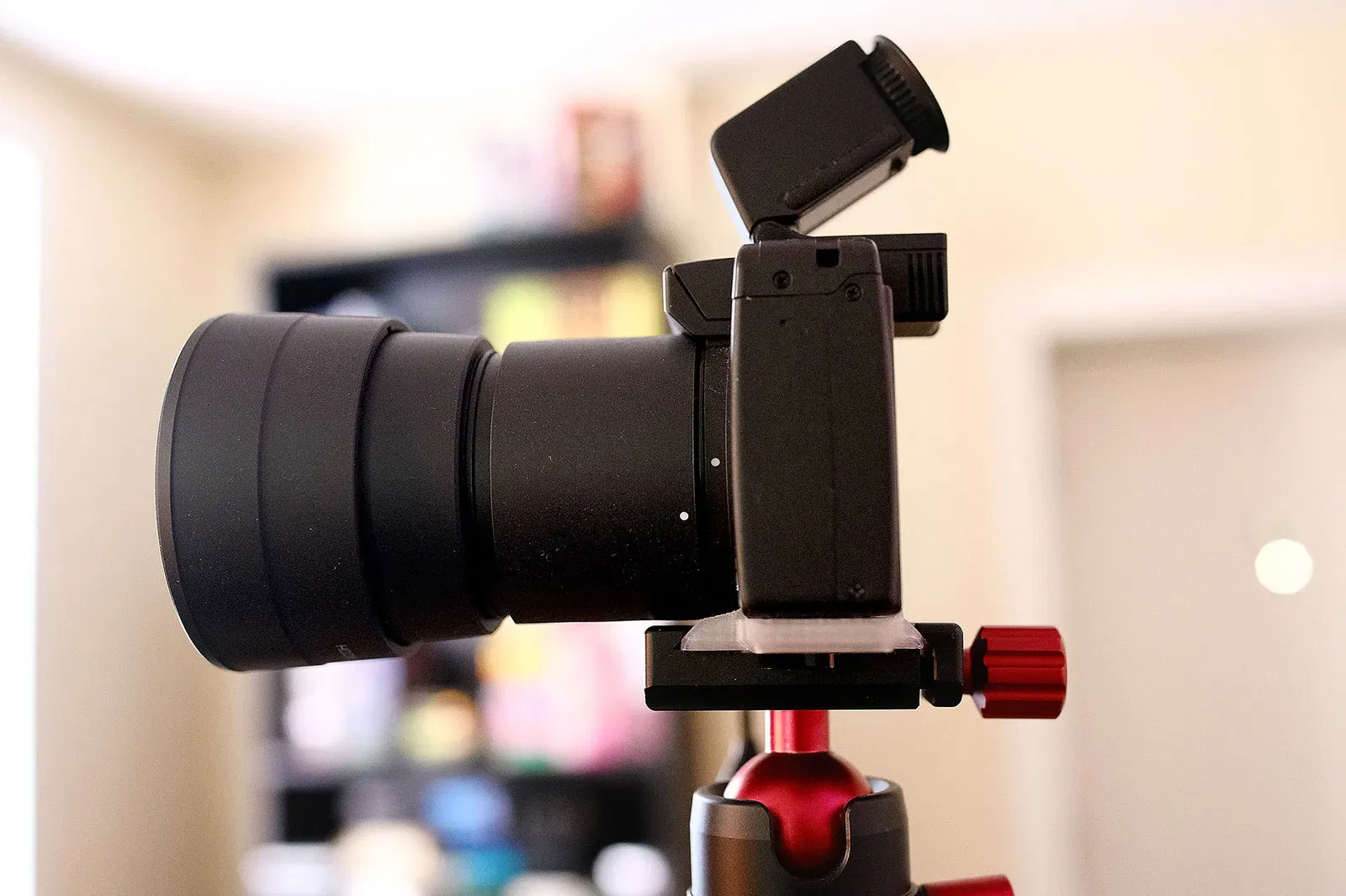 Nếu bạn có phụ kiện nắp ống kính tự động tri-wing, bạn sẽ phải tháo nó ra trước khi gắn máy ảnh vào chân máy sử dụng đế nhỏ gọn này! Đó là cái giá chúng ta phải trả để làm cho nó nhỏ gọn.