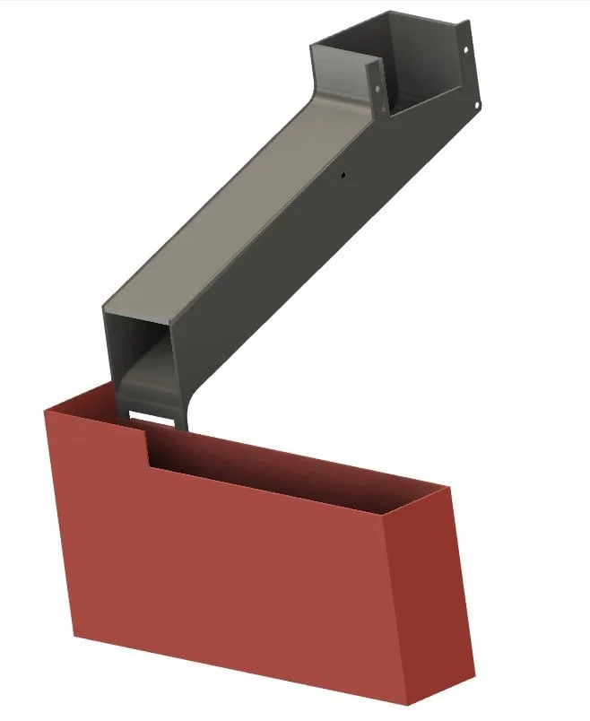 Đây là một thùng đựng rác thải filament dạng 2 phần, gồm một máng trượt (chute) và phần thùng chứa. Phần máng trượt được ghép từ 2 chi tiết: thân chính và nắp, sau khi in xong chỉ cần lắp khớp vào nhau và cố định lên máy in bằng 4 con ốc có sẵn.