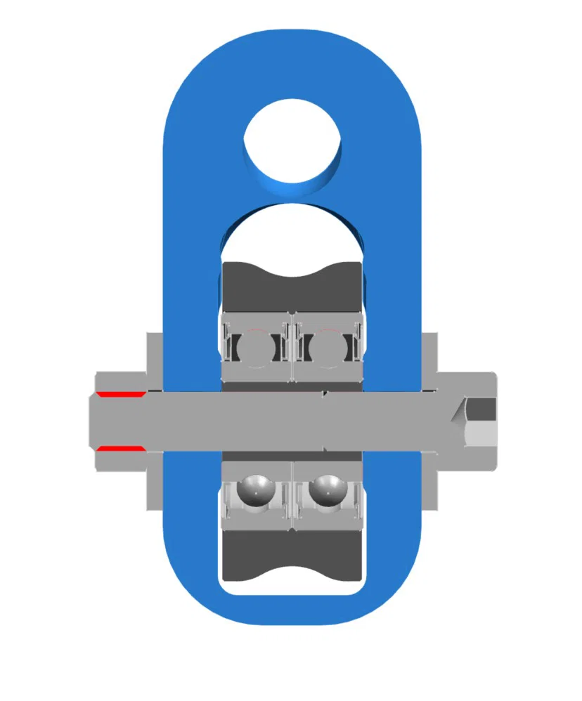 Ròng rọc nhỏ gọn (Pulley small / Umlenkrolle klein). Khuyến nghị in 6 perimeters, layer height 0,4mm, không cần support. Lắp ráp với 2 vòng bi 608 ZZ, vít M6x35, 2 long đền (ISO 7093) và ê-cu M6.