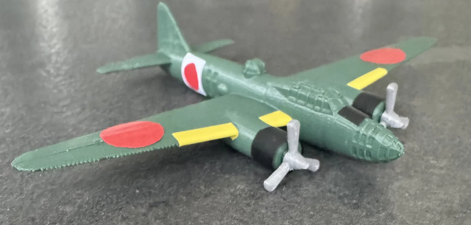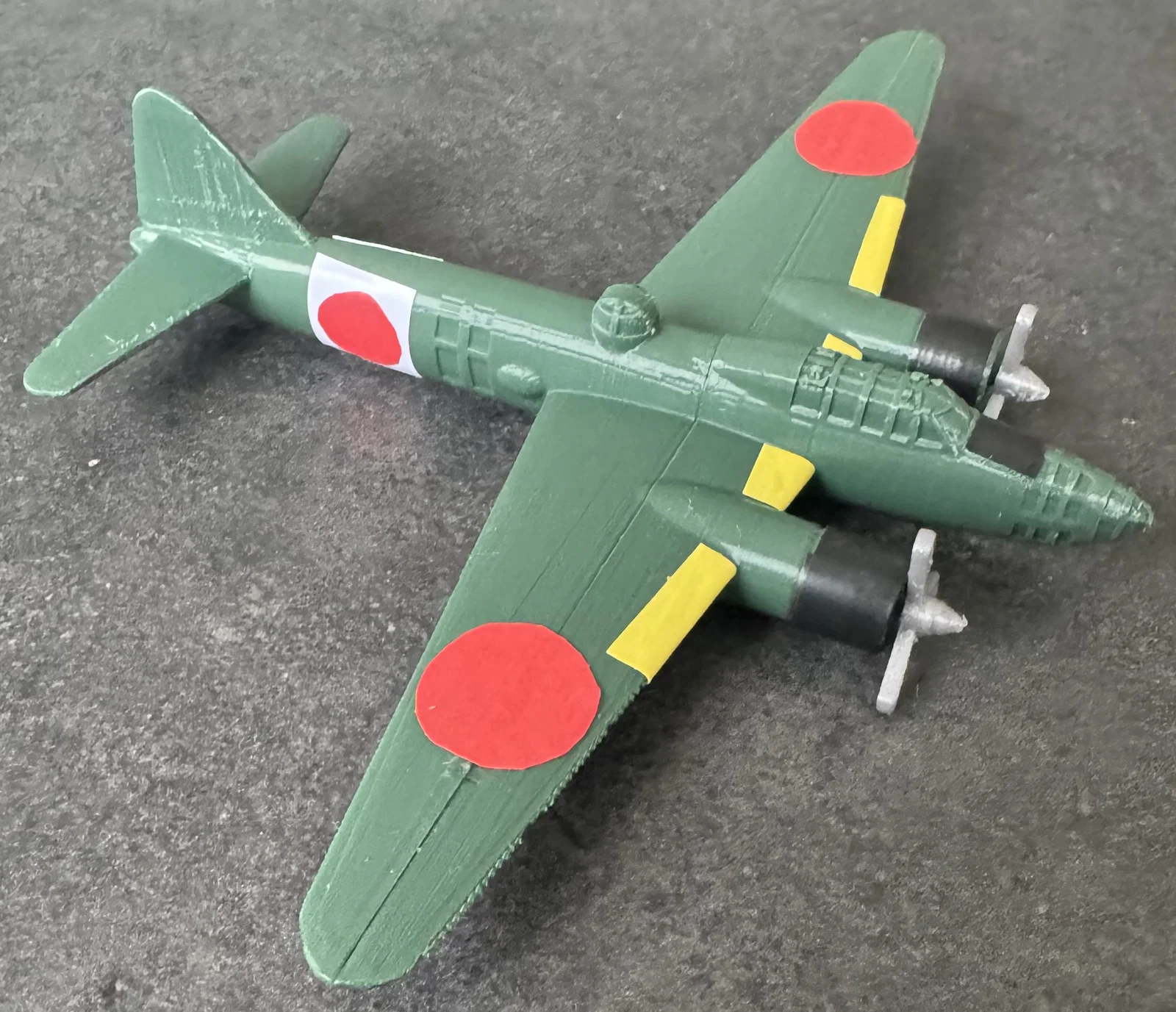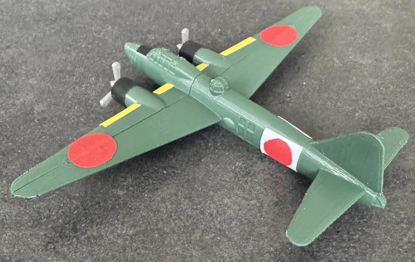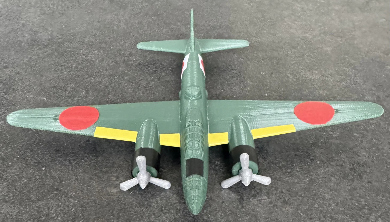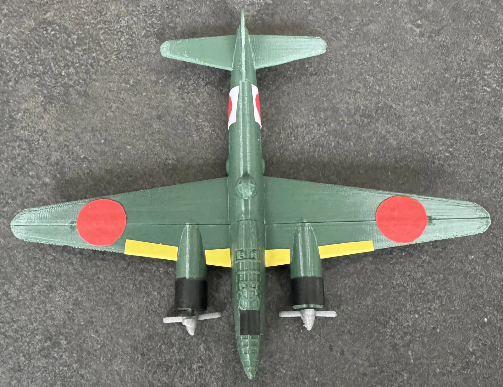 Mẫu kit card Mitsubishi G4M1 dạng print-in-place, có thể in chung hoặc tách từng phần để đổi màu. Sau khi in cần lắp ráp và dán keo; một số chỗ có thể cần dùng support. Phù hợp trưng bày mini.